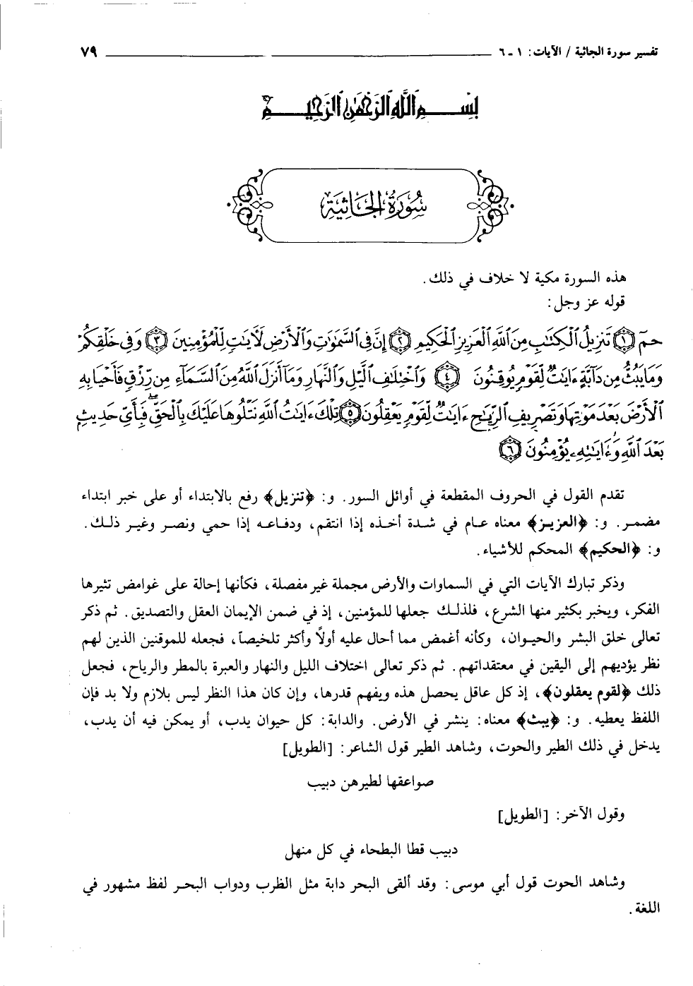 [سورة الجاثية (٤٥) : الآيات ١ الى ٦]