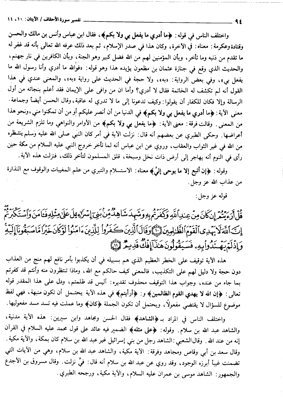 قُلْ أَرَأَيْتُمْ إِنْ كانَ مِنْ عِنْدِ اللَّهِ وَكَفَرْتُمْ بِهِ وَشَهِدَ شاهِدٌ مِنْ بَنِي إِسْرائِيلَ عَلى مِثْلِهِ فَآمَنَ وَاسْتَكْبَرْتُمْ إِنَّ اللَّهَ لا يَهْدِي الْقَوْمَ الظَّالِمِينَ (١٠) وَقالَ الَّذِينَ كَفَرُوا لِلَّذِينَ آمَنُوا لَوْ كانَ خَيْراً ما سَبَقُونا إِلَيْهِ وَإِذْ لَمْ يَهْتَدُوا بِهِ فَسَيَقُولُونَ هذا إِفْكٌ قَدِيمٌ (١١)