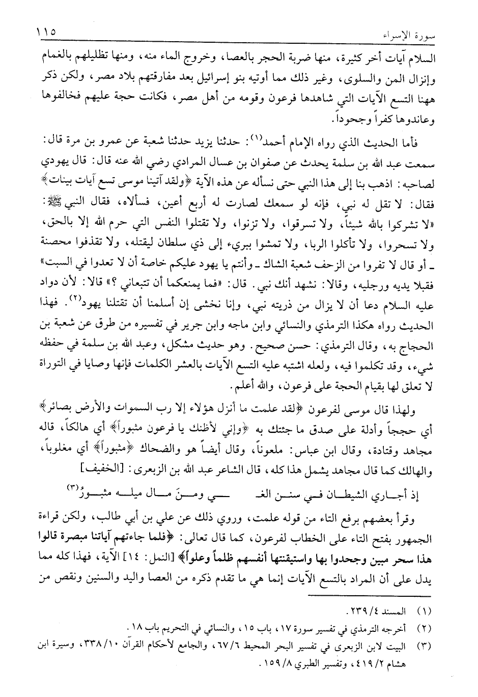 (2) أخرجه الترمذي في تفسير سورة 17، باب 15، والنسائي في التحريم باب 18.