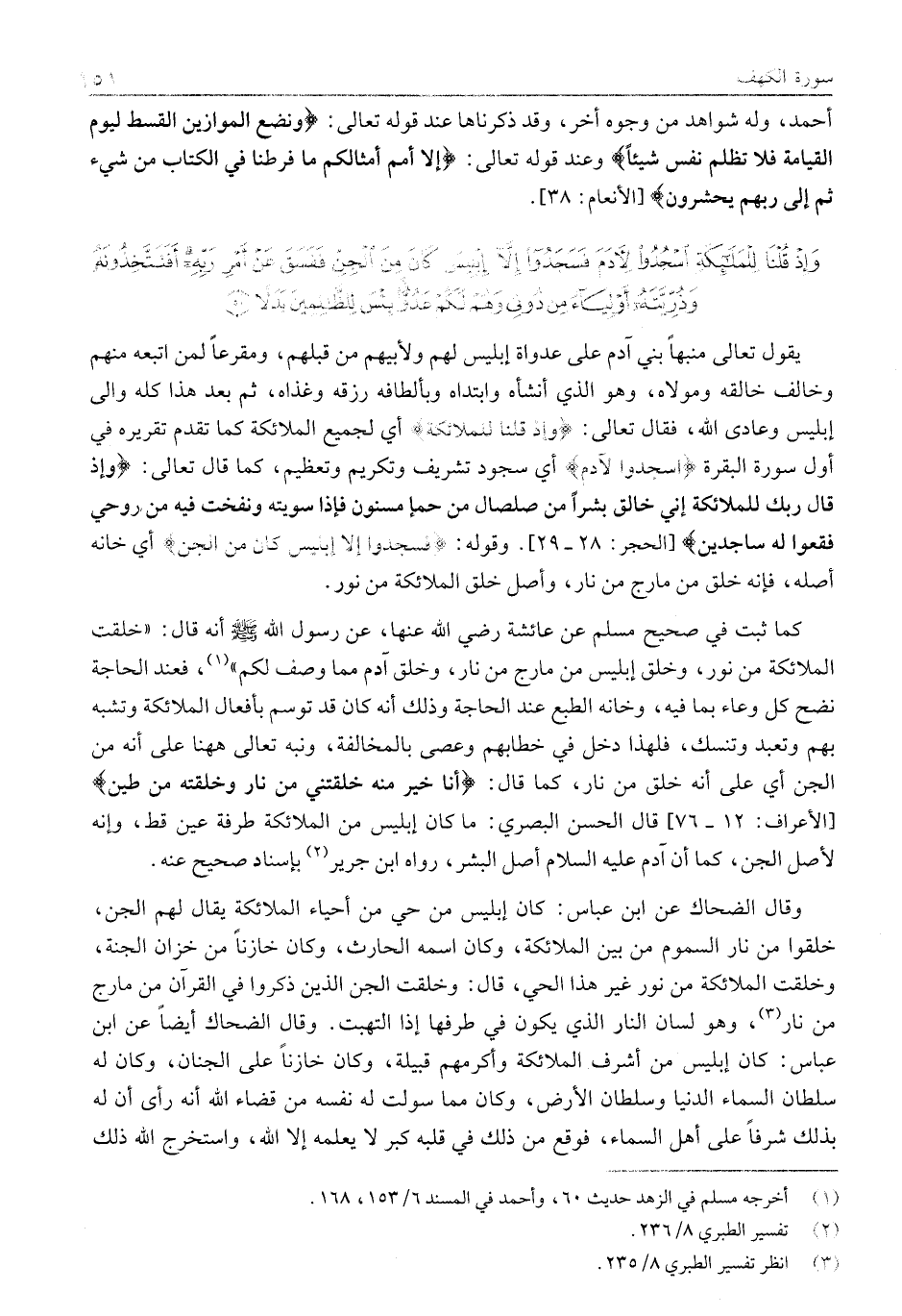 كَمَا ثَبَتَ فِي صَحِيحِ مُسْلِمٍ عَنْ عَائِشَةَ رَضِيَ اللَّهُ عَنْهَا، عَنْ رَسُولِ اللَّهِ صَلَّى اللَّهُ عَلَيْهِ وَسَلَّمَ أَنَّهُ قَالَ: «خُلِقَتِ الْمَلَائِكَةُ مِنْ نُورٍ، وَخُلِقَ إِبْلِيسُ مِنْ مَارِجٍ مِنْ نَارٍ، وَخُلِقَ آدَمُ مِمَّا وُصِفَ لَكُمْ» «1» ، فَعِنْدَ الْحَاجَةِ نَضَحَ كُلُّ وِعَاءٍ بِمَا فِيهِ، وَخَانَهُ الطَّبْعُ عِنْدَ الْحَاجَةِ وَذَلِكَ أَنَّهُ كَانَ قَدْ تَوَسَّمَ بِأَفْعَالِ الْمَلَائِكَةِ وَتَشَبَّهَ بِهِمْ وَتَعَبَّدَ وَتَنَسَّكَ، فَلِهَذَا دَخَلَ فِي خِطَابِهِمْ وَعَصَى بِالْمُخَالَفَةِ، وَنَبَّهَ تَعَالَى هَاهُنَا عَلَى أَنَّهُ مِنَ الْجِنِّ أَيْ على إِنَّهُ خُلِقَ مِنْ نَارٍ، كَمَا قَالَ: أَنَا خَيْرٌ مِنْهُ خَلَقْتَنِي مِنْ نارٍ وَخَلَقْتَهُ مِنْ طِينٍ [الأعراف: 12- 76] قَالَ الْحَسَنُ الْبَصْرِيُّ: مَا كَانَ إِبْلِيسُ مِنَ الْمَلَائِكَةِ طَرْفَةَ عَيْنٍ قَطُّ، وَإِنَّهُ لَأَصْلُ الْجِنِّ، كَمَا أَنَّ آدَمَ عَلَيْهِ السَّلَامُ أَصْلُ الْبَشَرِ، رَوَاهُ ابْنُ جَرِيرٍ «2» بِإِسْنَادٍ صَحِيحٍ عَنْهُ.