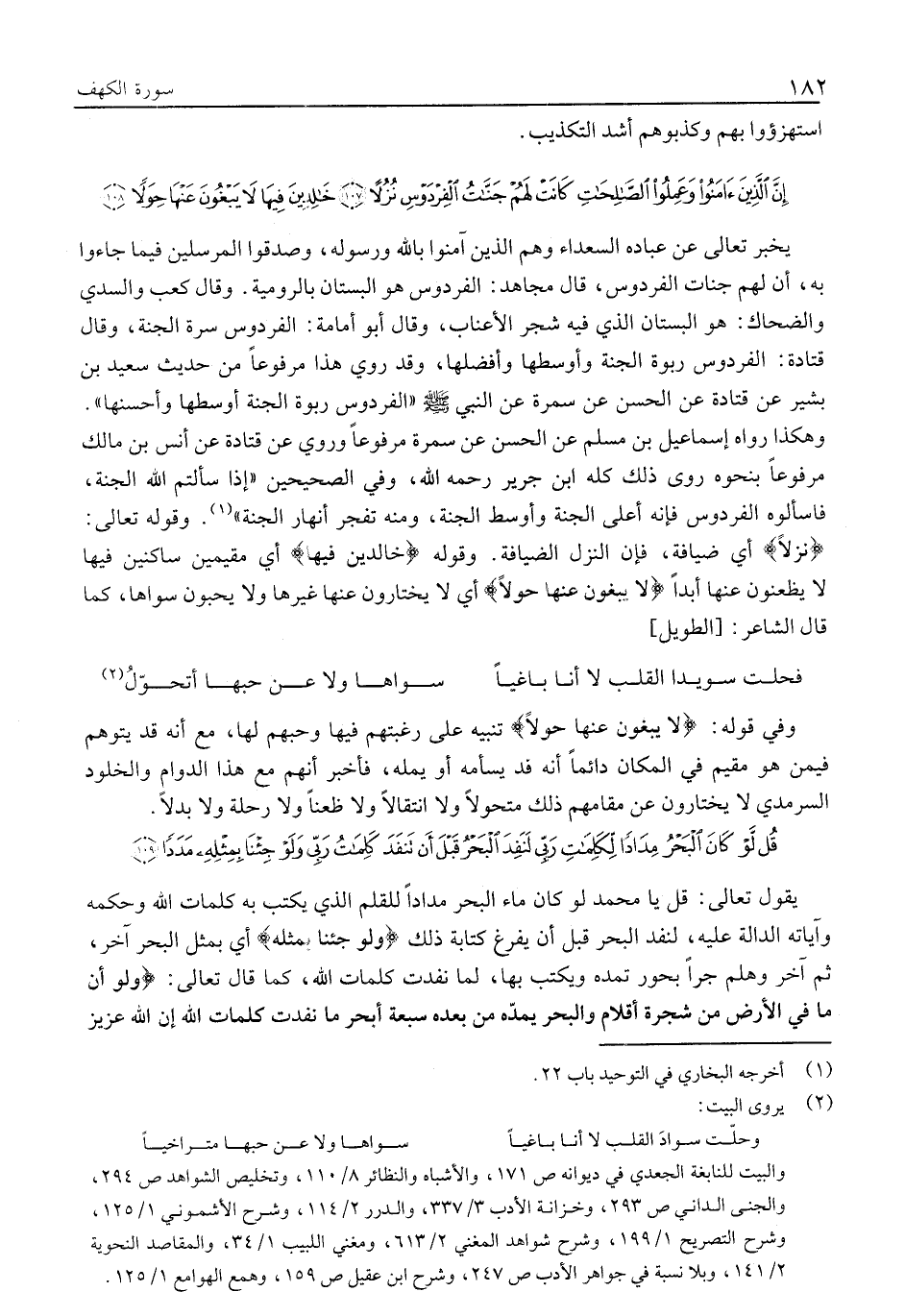 قُلْ لَوْ كانَ الْبَحْرُ مِداداً لِكَلِماتِ رَبِّي لَنَفِدَ الْبَحْرُ قَبْلَ أَنْ تَنْفَدَ كَلِماتُ رَبِّي وَلَوْ جِئْنا بِمِثْلِهِ مَدَداً (109)