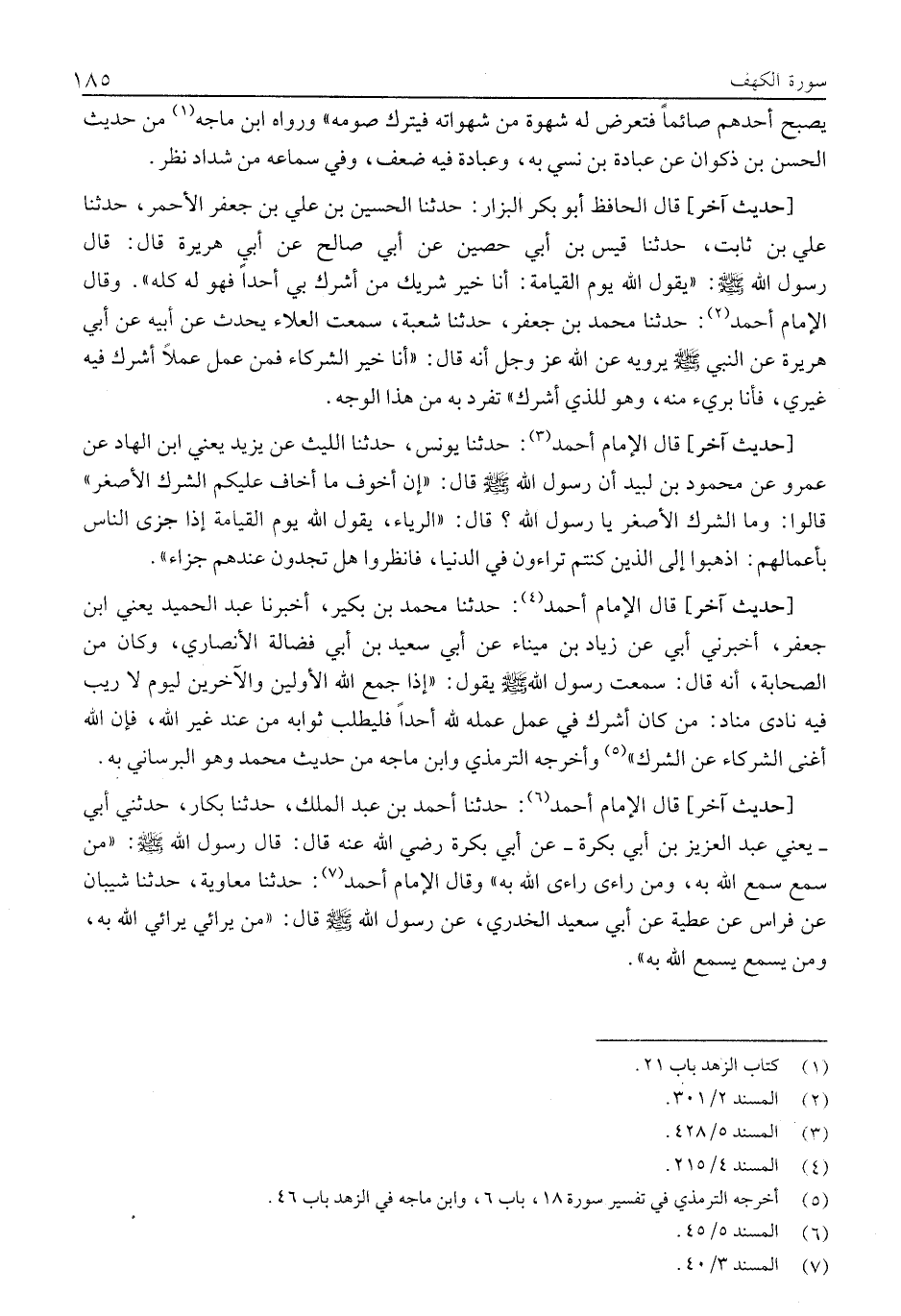 (5) أخرجه الترمذي في تفسير سورة 18، باب 6، وابن ماجة في الزهد باب 46.
