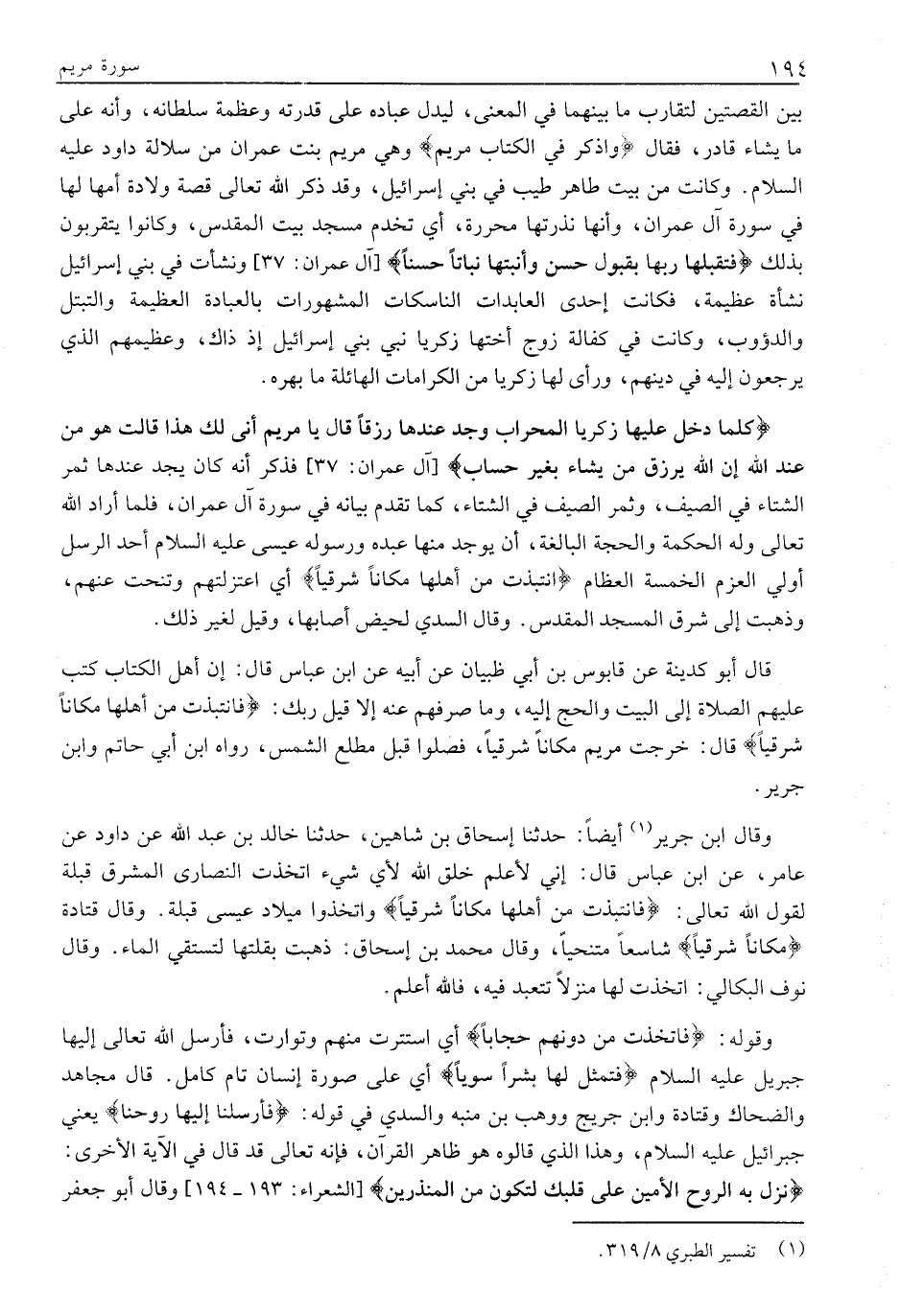 وَقَالَ ابْنُ جَرِيرٍ «1» أَيْضًا: حَدَّثَنَا إِسْحَاقُ بْنُ شَاهِينَ، حَدَّثَنَا خَالِدُ بْنُ عَبْدِ اللَّهِ عَنْ دَاوُدَ عَنْ عَامِرٍ، عَنِ ابْنِ عَبَّاسٍ قَالَ: إِنِّي لَأَعْلَمُ خَلْقِ اللَّهِ لِأَيِّ شَيْءٍ اتَّخَذَتِ النَّصَارَى الْمَشْرِقَ قِبْلَةً لِقَوْلِ اللَّهِ تَعَالَى: انْتَبَذَتْ مِنْ أَهْلِها مَكاناً شَرْقِيًّا
