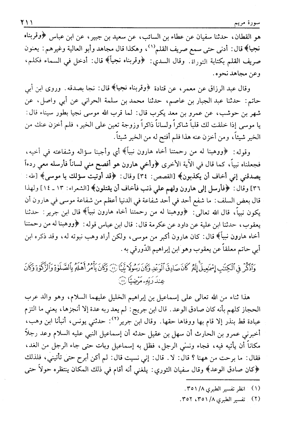 هُوَ الْقَطَّانُ، حَدَّثَنَا سُفْيَانُ عَنْ عَطَاءِ بْنِ السَّائِبِ، عَنْ سَعِيدِ بْنِ جُبَيْرٍ، عَنِ ابْنِ عَبَّاسٍ وَقَرَّبْناهُ نَجِيًّا قَالَ: أُدْنِيَ حَتَّى سَمِعَ صَرِيفَ الْقَلَمِ «1» ، وَهَكَذَا قَالَ مُجَاهِدٌ وَأَبُو الْعَالِيَةِ وَغَيْرُهُمْ: يَعْنُونَ صَرِيفَ الْقَلَمِ بِكِتَابَةِ التَّوْرَاةِ. وَقَالَ السُّدِّيُّ: وَقَرَّبْناهُ نَجِيًّا قَالَ: أُدْخِلَ فِي السَّمَاءِ فَكُلِّمَ، وَعَنْ مُجَاهِدٍ نَحْوَهُ.