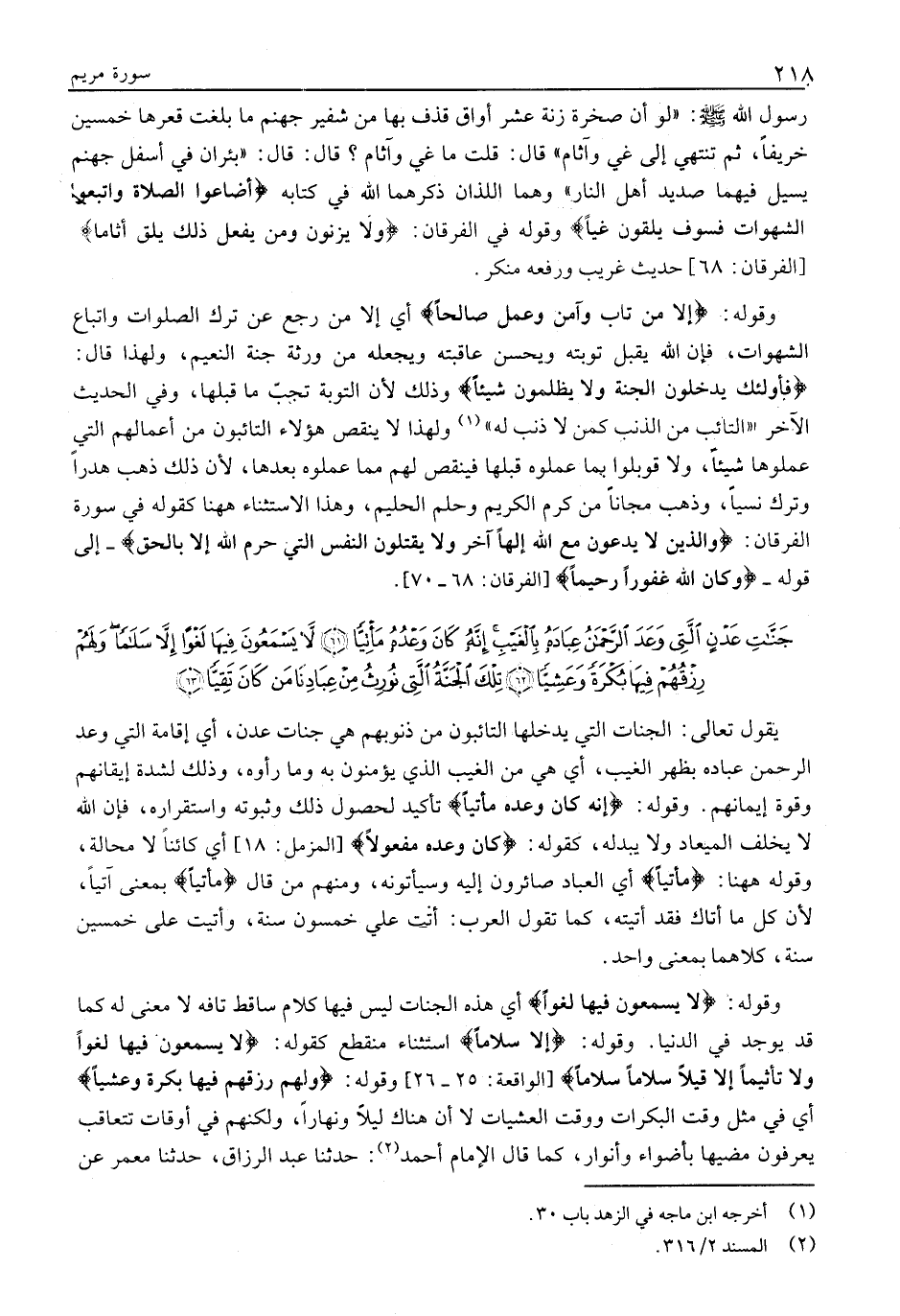 جَنَّاتِ عَدْنٍ الَّتِي وَعَدَ الرَّحْمنُ عِبادَهُ بِالْغَيْبِ إِنَّهُ كانَ وَعْدُهُ مَأْتِيًّا (61) لَا يَسْمَعُونَ فِيها لَغْواً إِلاَّ سَلاماً وَلَهُمْ رِزْقُهُمْ فِيها بُكْرَةً وَعَشِيًّا (62) تِلْكَ الْجَنَّةُ الَّتِي نُورِثُ مِنْ عِبادِنا مَنْ كانَ تَقِيًّا (63)