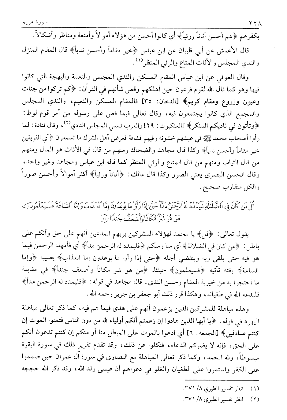 (1) انظر تفسير الطبري 8/ 371.