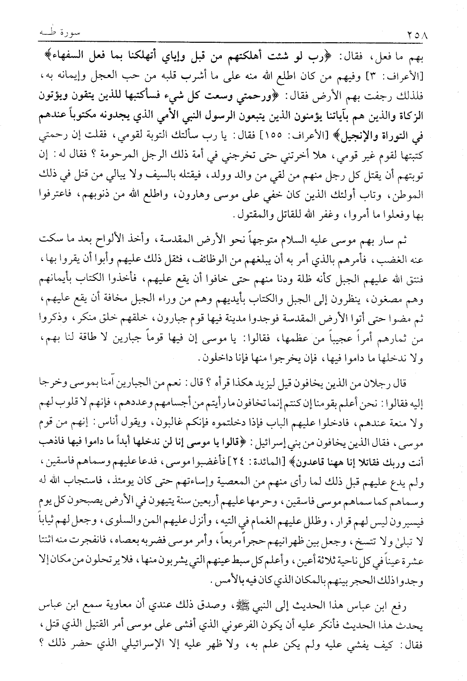 رَفَعَ ابْنُ عَبَّاسٍ هَذَا الْحَدِيثَ إِلَى النَّبِيِّ صَلَّى اللَّهُ عَلَيْهِ وَسَلَّمَ، وَصَدَّقَ ذَلِكَ عِنْدِي أَنَّ مُعَاوِيَةَ سَمِعَ ابْنَ عَبَّاسٍ يُحَدِّثُ هَذَا الْحَدِيثَ فَأَنْكَرُ عَلَيْهِ أَنْ يَكُونَ الْفِرْعَوْنِيُّ الَّذِي أَفْشَى عَلَى مُوسَى أَمْرَ الْقَتِيلِ الَّذِي قَتَلَ، فَقَالَ: كَيْفَ يُفْشِي عَلَيْهِ وَلَمْ يَكُنْ عَلِمَ بِهِ، وَلَا ظَهَرَ عَلَيْهِ إِلَّا الْإِسْرَائِيلِيُّ الَّذِي حَضَرَ ذَلِكَ
