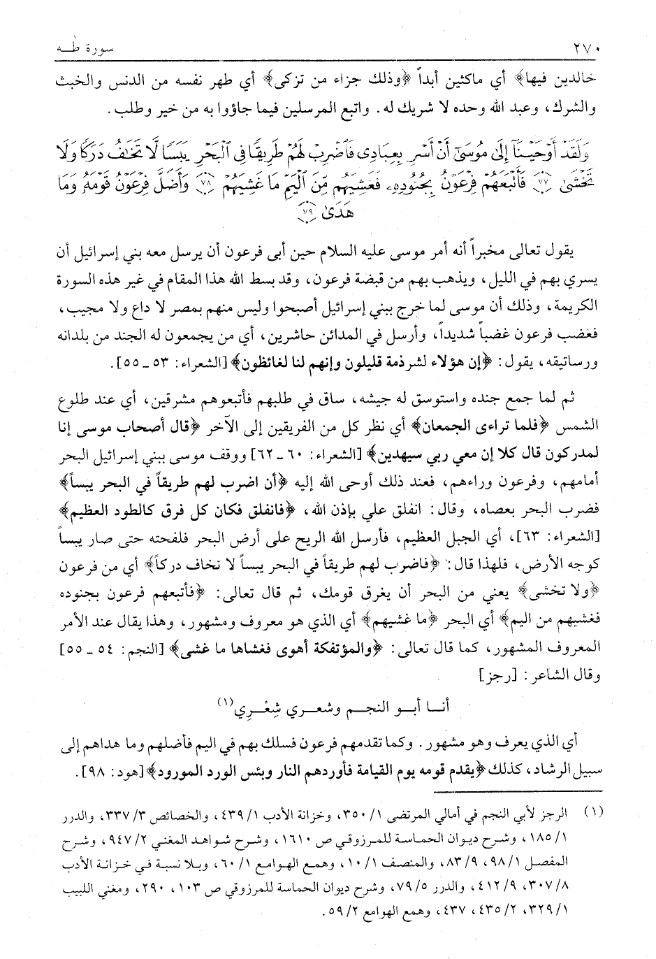 وَلَقَدْ أَوْحَيْنا إِلى مُوسى أَنْ أَسْرِ بِعِبادِي فَاضْرِبْ لَهُمْ طَرِيقاً فِي الْبَحْرِ يَبَساً لَا تَخافُ دَرَكاً وَلا تَخْشى (77) فَأَتْبَعَهُمْ فِرْعَوْنُ بِجُنُودِهِ فَغَشِيَهُمْ مِنَ الْيَمِّ مَا غَشِيَهُمْ (78) وَأَضَلَّ فِرْعَوْنُ قَوْمَهُ وَما هَدى (79)