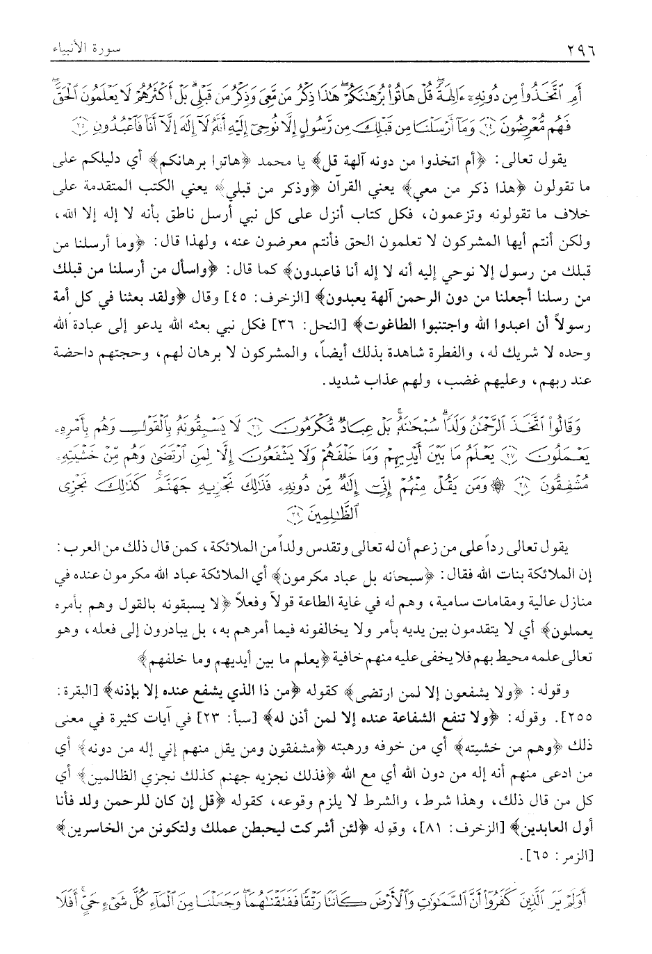 أَمِ اتَّخَذُوا مِنْ دُونِهِ آلِهَةً قُلْ هاتُوا بُرْهانَكُمْ هَذَا ذِكْرُ مَنْ مَعِيَ وَذِكْرُ مَنْ قَبْلِي بَلْ أَكْثَرُهُمْ لَا يَعْلَمُونَ الْحَقَّ فَهُمْ مُعْرِضُونَ (24) وَما أَرْسَلْنا مِنْ قَبْلِكَ مِنْ رَسُولٍ إِلاَّ نُوحِي إِلَيْهِ أَنَّهُ لَا إِلهَ إِلاَّ أَنَا فَاعْبُدُونِ (25)