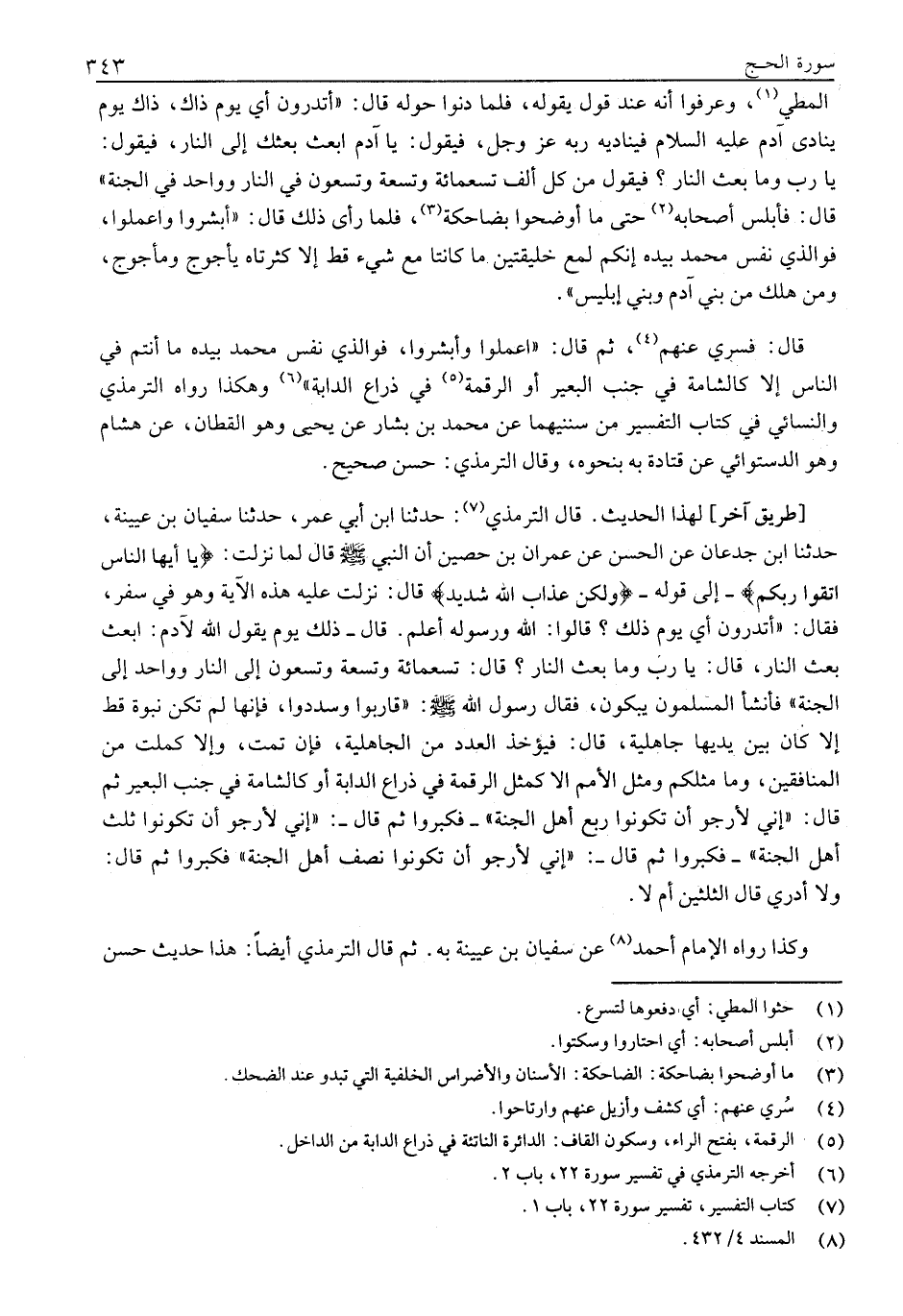 (6) أخرجه الترمذي في تفسير سورة 22، باب 2.