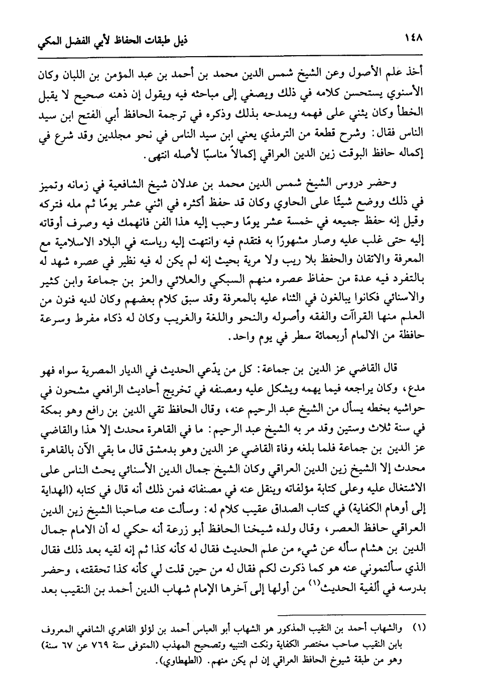 1 والشهاب أحمد بن النقيب المذكور هو الشهاب أبو العباس أحمد بن لؤلؤ القاهري الشافعي المعروف بابن النقيب صاحب مختصر الكفاية ونكت التنبيه وتصحيح المهذب "المتوفى سنة 796 عن 67 سنة" وهو من طبقة شيوخ الحافظ العراقي إن لم يكن منهم. "الطهطاوي".