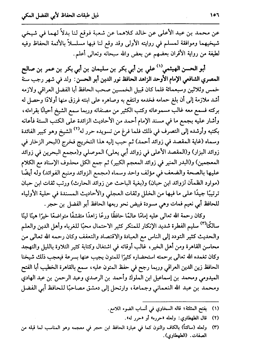 أبو الحسن الهيثمي 1 علي بن أبي بكر بن سليمان بن أبي بكر بن عمر بن صالح المصري الشافعي الإمام الأوحد الزاهد الحافظ نور الدين أبو الحسن: