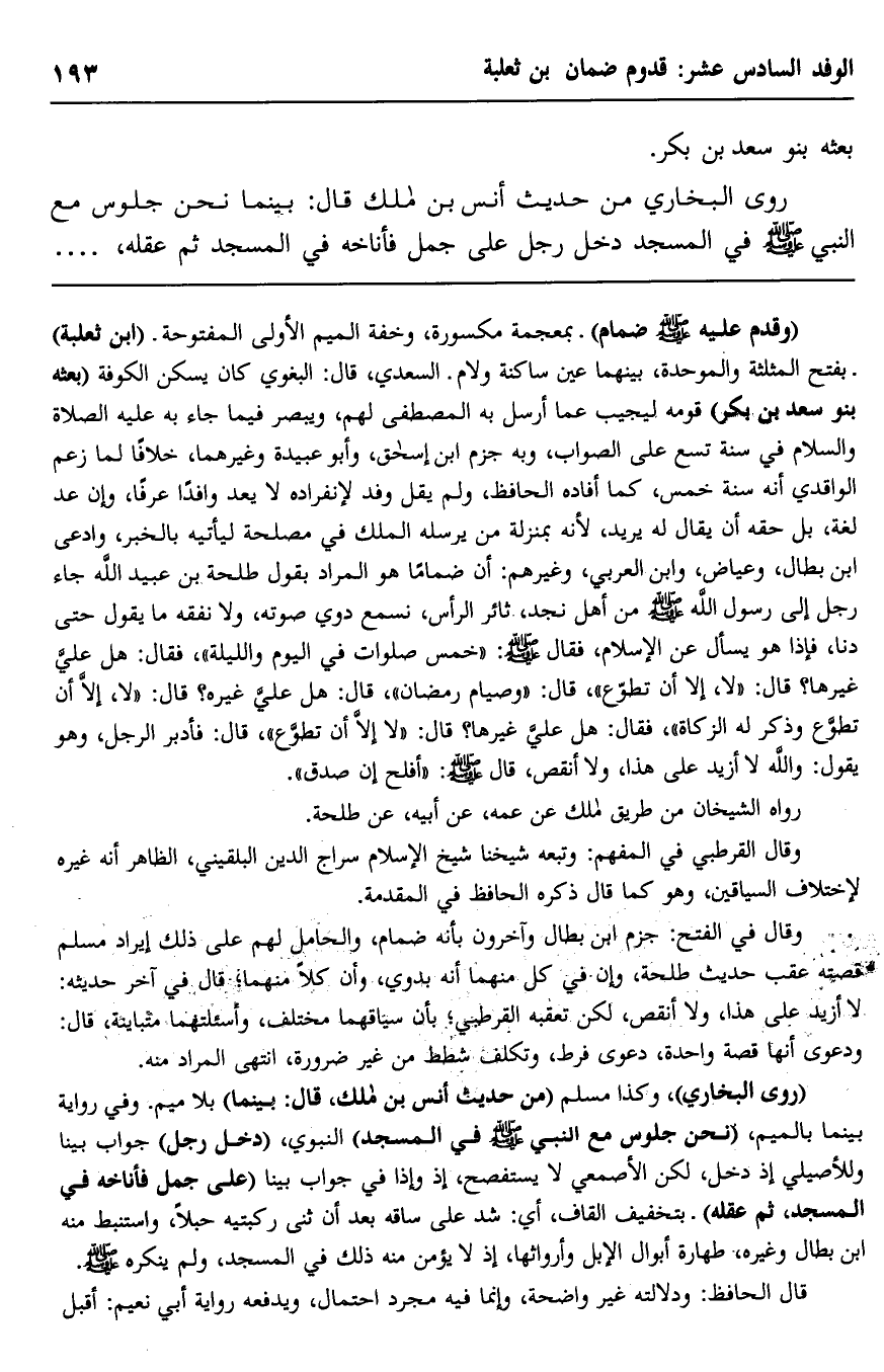 الوفد السادس عشر: قدوم ضمام بن ثعلبة