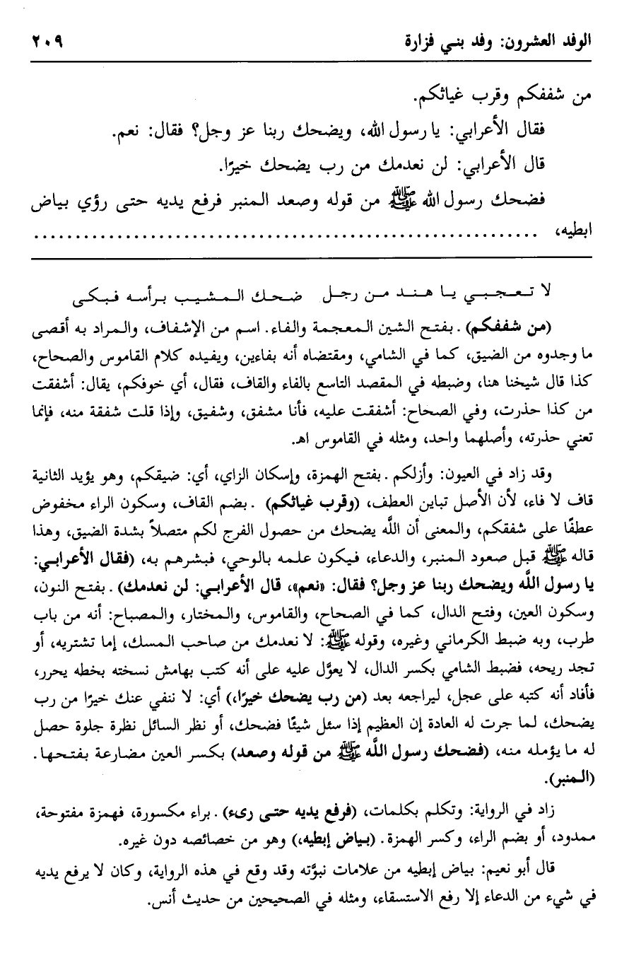 فقال الأعرابي: يا رسول الله، ويضحك ربنا -عز وجل؟ فقال: "نعم".
