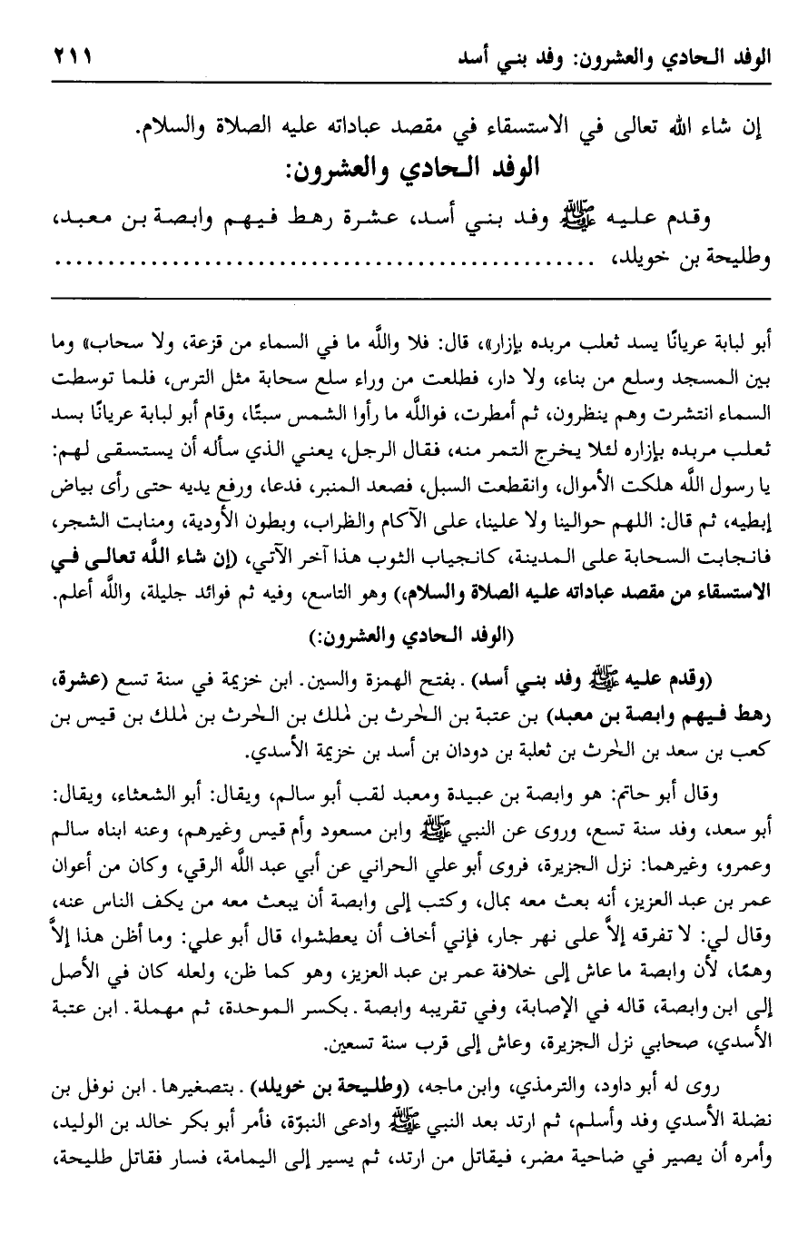 وقدم عليه -صلى الله عليه وسلم- وفد بني أسد، عشرة رهط فيهم وابصة بن معبد، وطليحة بن خويلد،