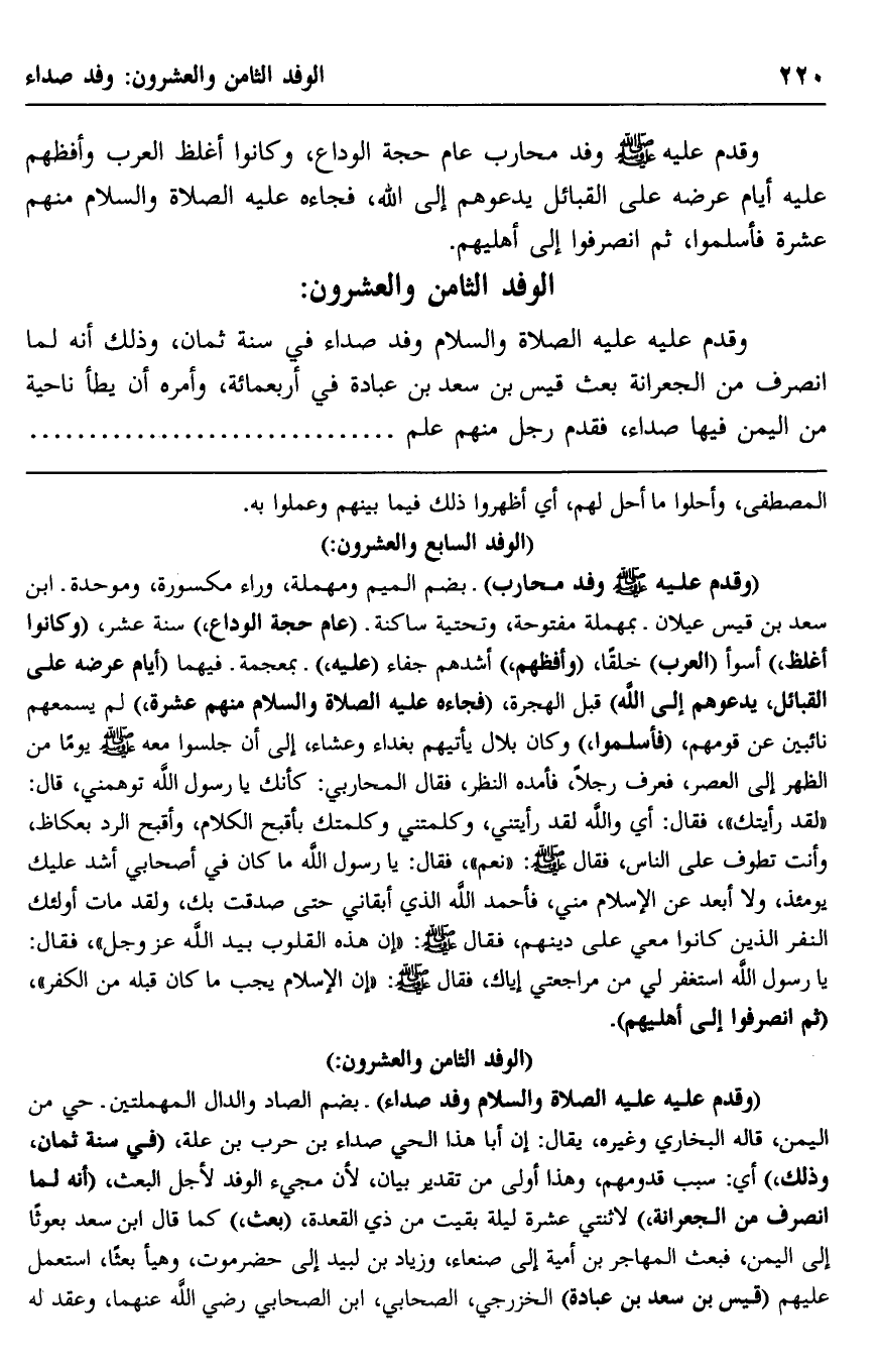 وقدم عليه -عليه الصلاة والسلام- وفد صداء في سنة ثمان، وذلك أنه لما انصرف من الجعرانة بعث قيس بن سعد بن عبادة في أربعمائة، وأمره أن يطأ ناحية من اليمن فيها صداء، فقدم رجل منهم علم