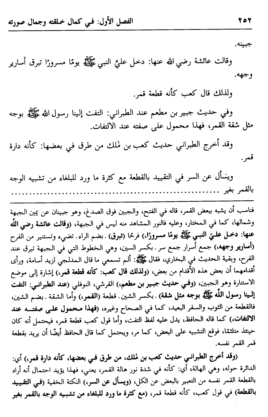 وفي حديث جبير بن معطم عند الطبراني: التفت إلينا رسول الله -صلى الله عليه وسلم- بوجهٍ مثل شقة القمر. فهذا محمول على صفته عند الالتفات.