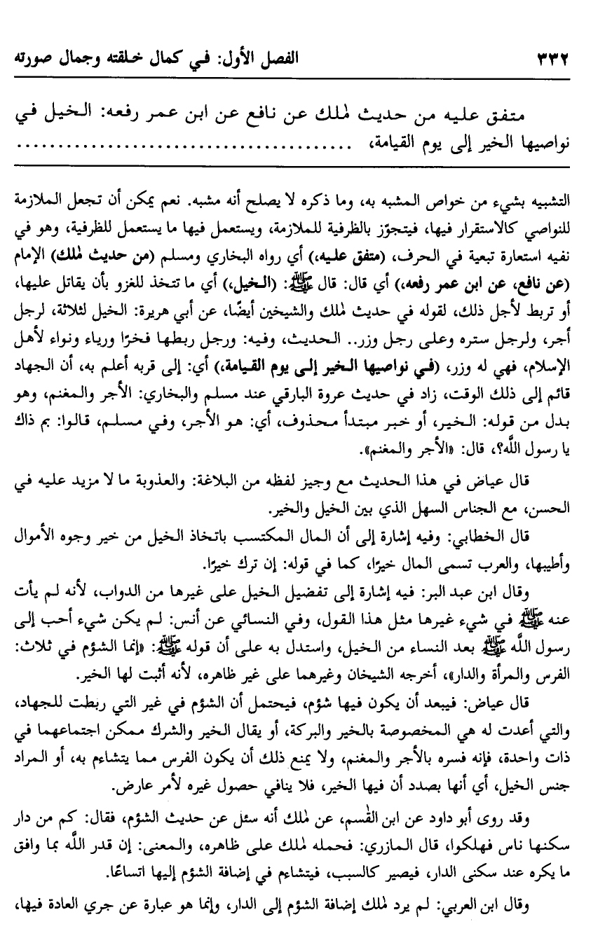 قال عياض في هذا الحديث مع وجيز لفظه من البلاغة: والعذوبة ما لا مزيد عليه في الحسن، مع الجناس السهل الذي بين الخيل والخير.