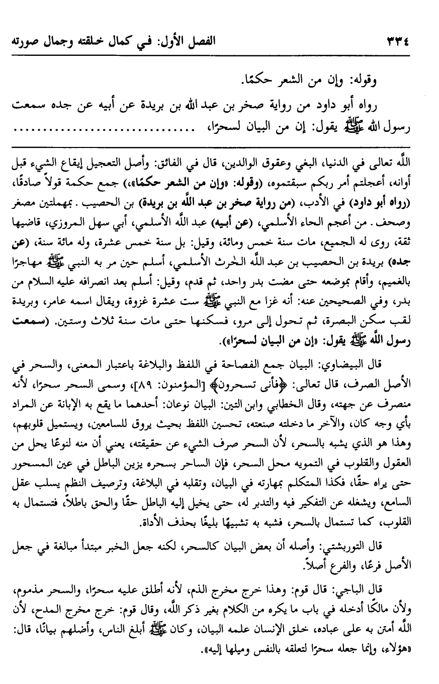 رواه أبو داود من رواية صخر بن عبد الله بن بريدة عن أبيه عن جده, سمعت رسول الله -صلى الله عليه وسلم- يقول: "إن من البيان لسحرًا،