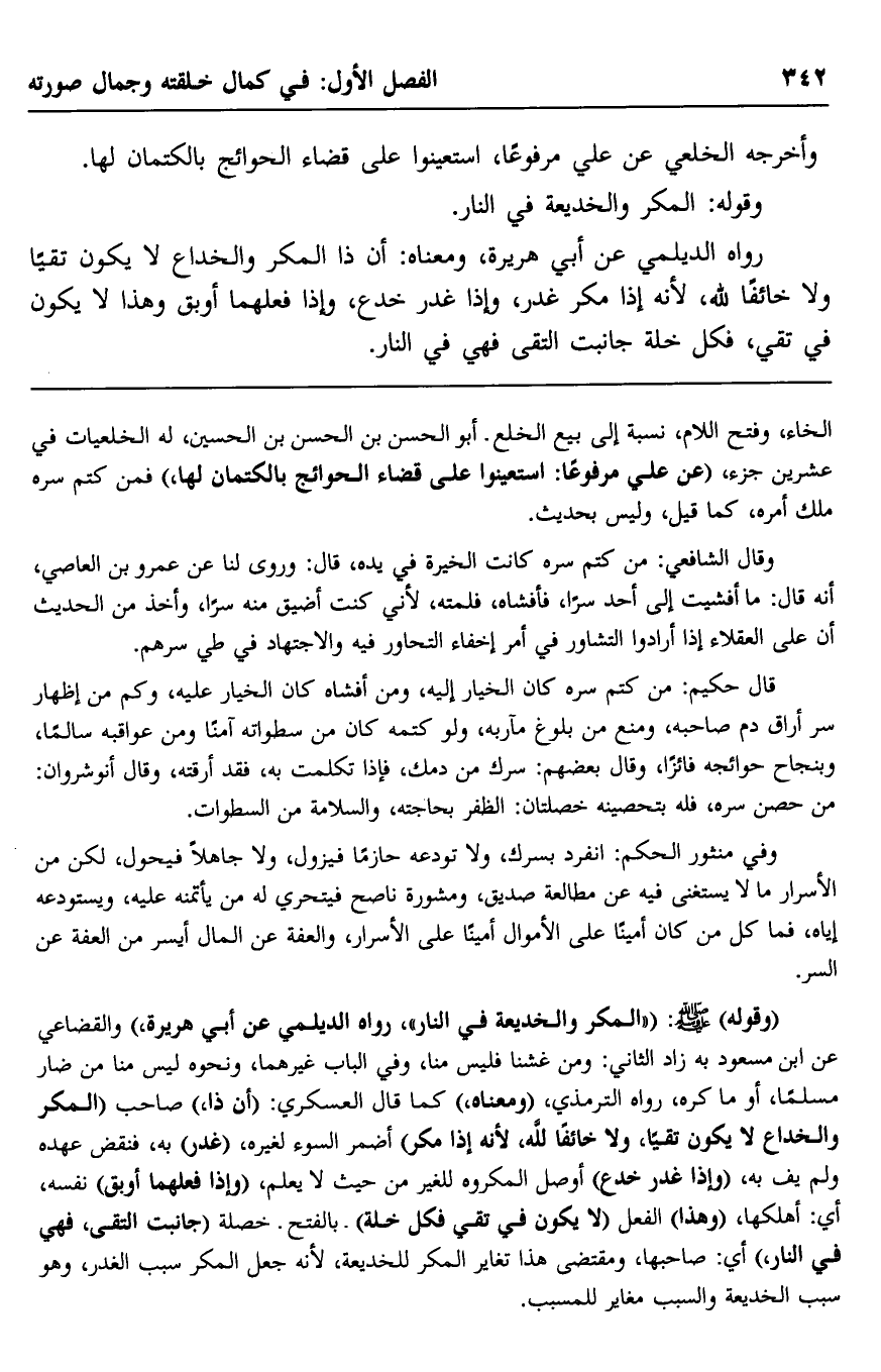 وقال الشافعي: من كتم سِرَّه كانت الخيرة في يده، قال: وروي لنا عن عمرو بن العاص أنه قال: ما أفشيت إلى أحد سرًّا، فأفشاه, فلمته؛ لأني كنت أضيق منه سرًّا، وأخذ من الحديث أن على العقلاء إذا أرادوا التشاور في أمر إخفاء التحاور فيه, والاجتهاد في طي سرهم.