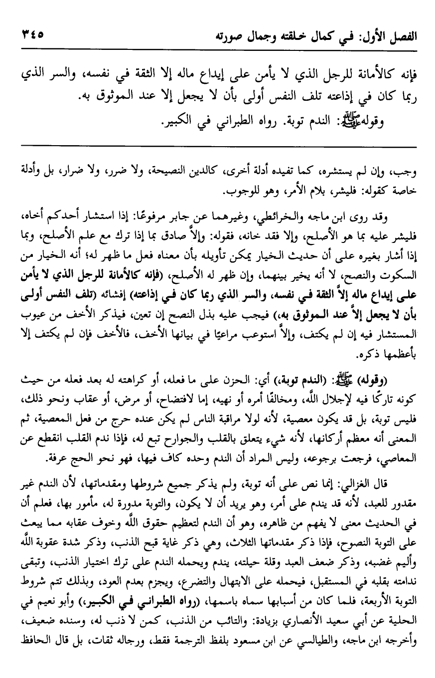 وقوله -صلى الله عليه وسلم: "الندم توبة" رواه الطبراني في الكبير.