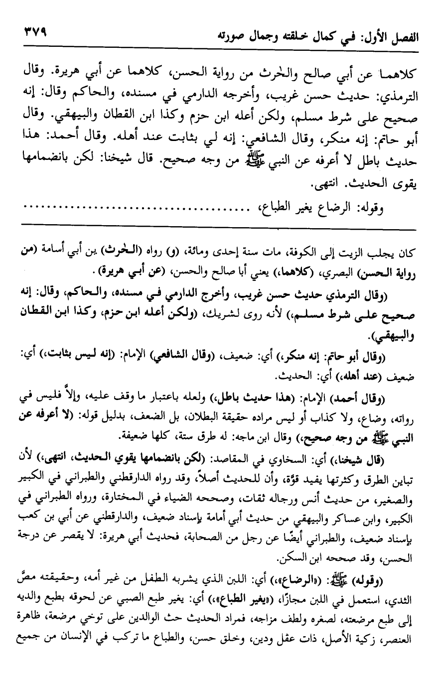 كلاهما عن أبي صالح والحارث من رواية الحسن، كلاهما عن أبي هريرة. وقال الترمذي: حديث حسن غريب، وأخرجه الدارمي في مسنده، والحاكم وقال: إنه صحيح على شرط مسلم، ولكن أعلّه ابن حزم وكذا ابن القطان والبيهقي. وقال أبو حاتم: إنه منكر، وقال الشافعي: إنه لي بثابت عند أهله. وقال أحمد: هذا حديث باطل لا أعرفه عن النبي -صلى الله عليه وسلم- من وجه صحيح. قال شيخنا: لكن بانضمامها يقوى الحديث. انتهى.