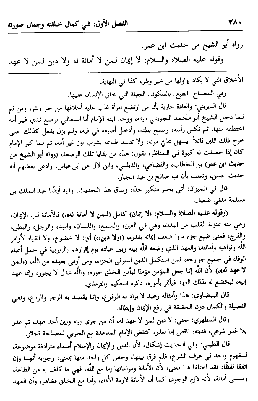 وقوله -عليه الصلاة والسلام: "لا إيمان لمن لا أمانة له, ولا دين لمن لا عهد