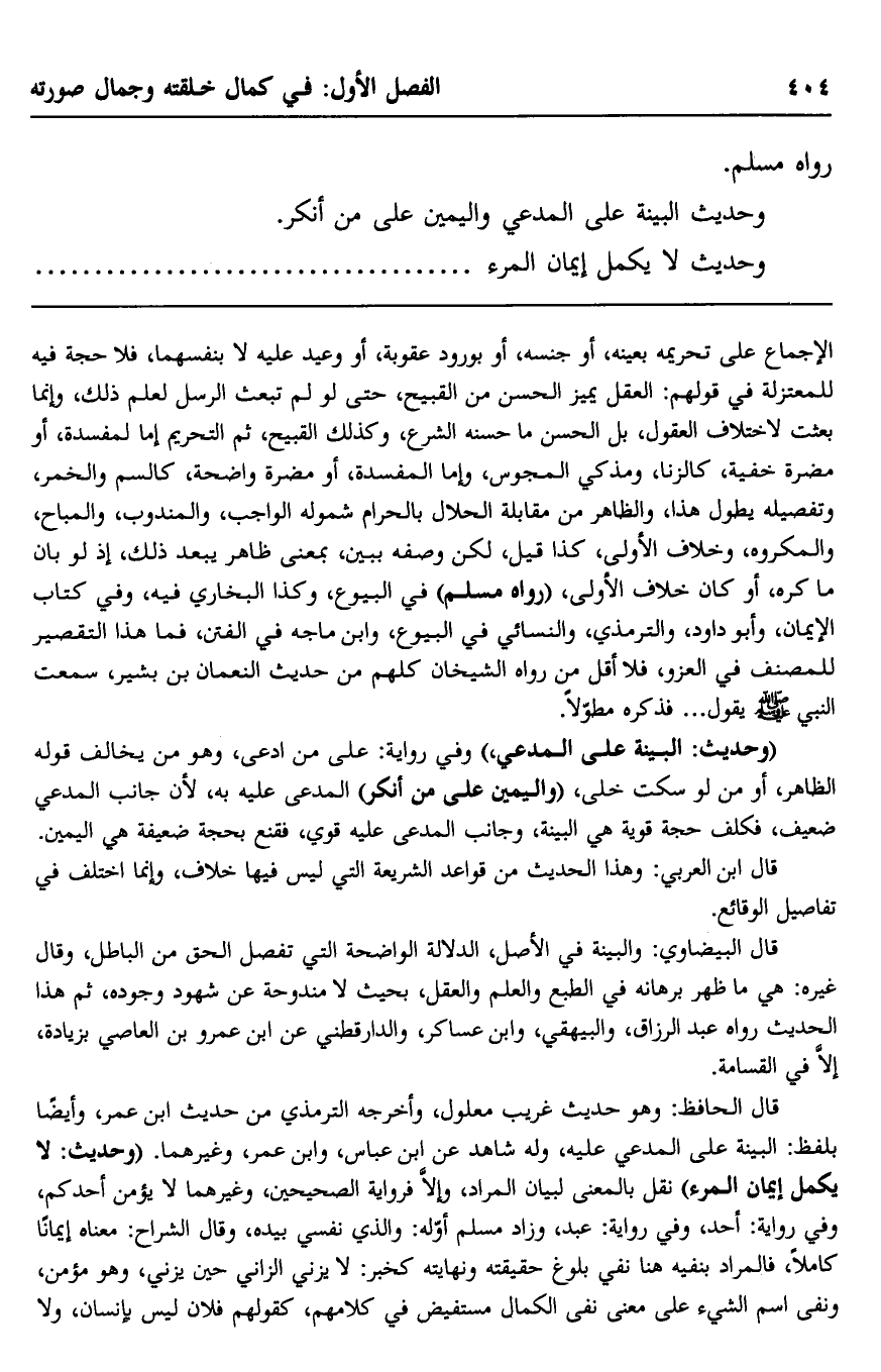 وحديث "البينة على المدعي واليمين على من أنكر".