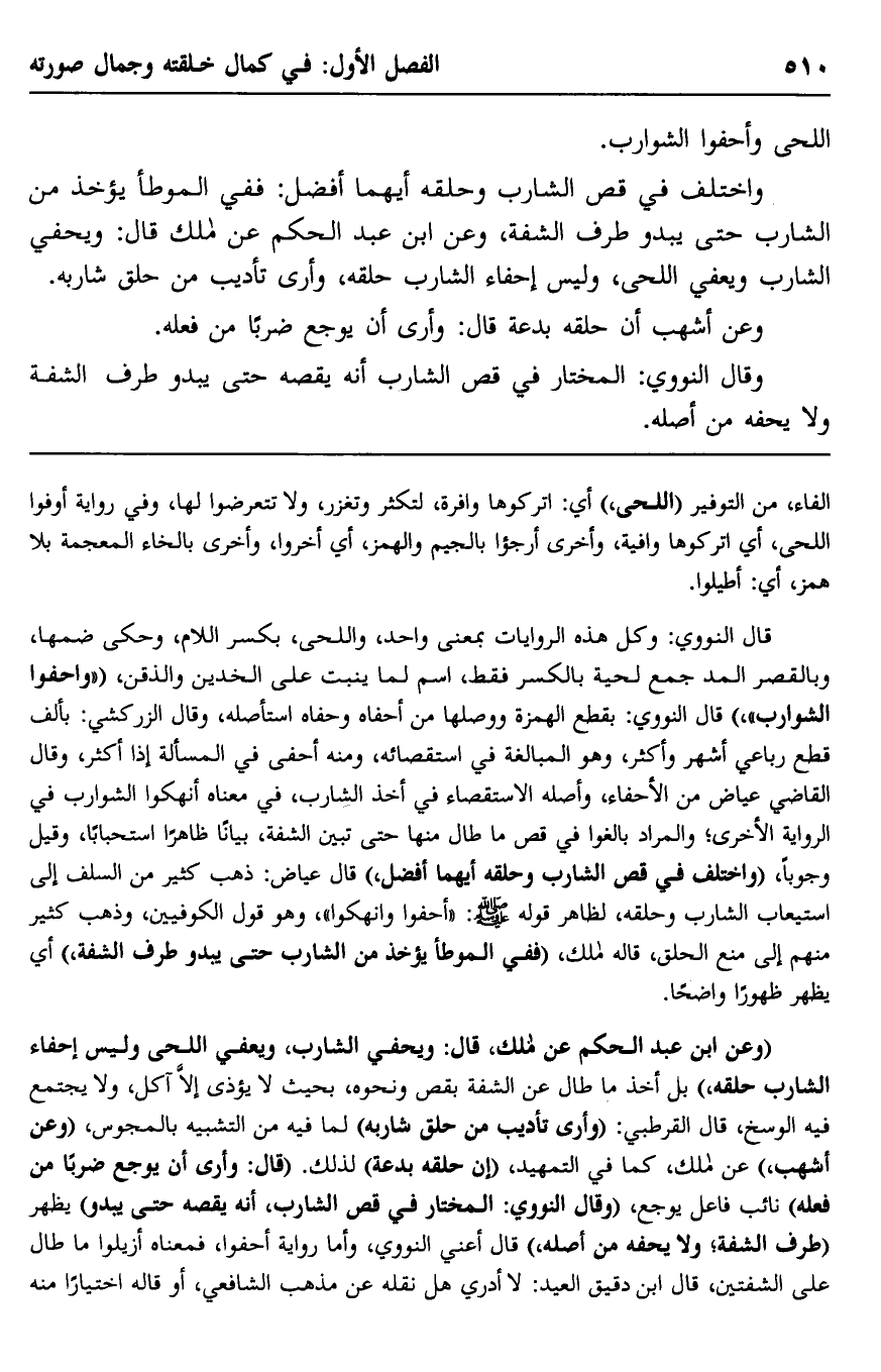 وقال النووي: المختار في قص الشارب أنه يقصه حتى يبدو طرف الشفة ولا يحفّه من أصله.