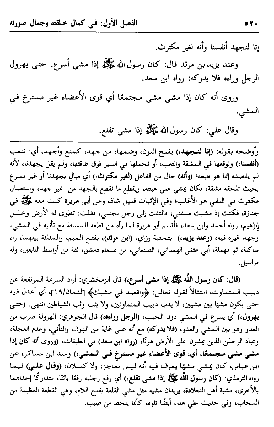 وعند يزيد بن مرثد قال: كان رسول الله -صلى الله عليه وسلم- إذا مشى أسرع حتى يهرول الرجل وراءه فلا يدركه: رواه ابن سعد.