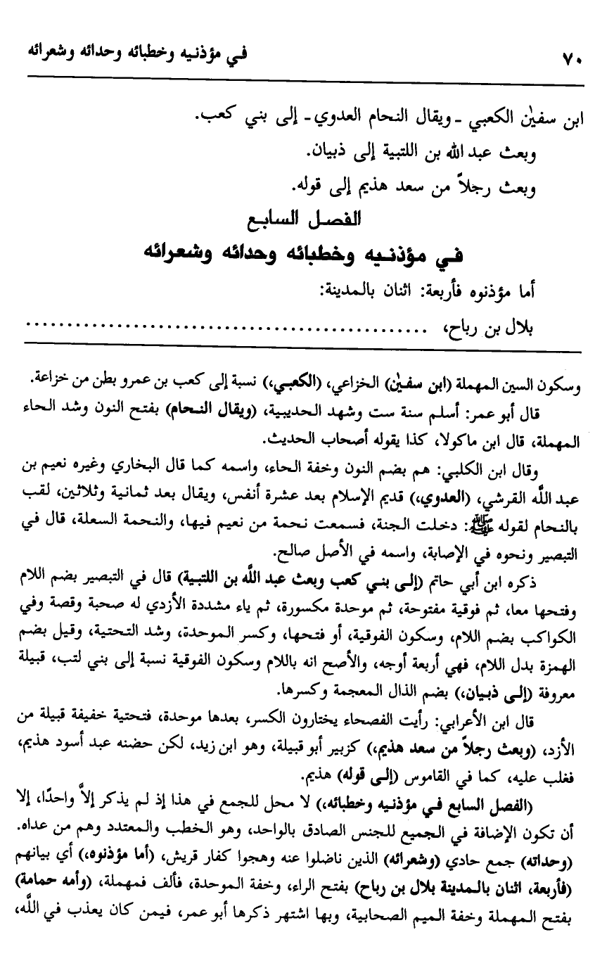 الفصل السابع: في مؤذنيه وخطبائه وحدائه وشعرائه