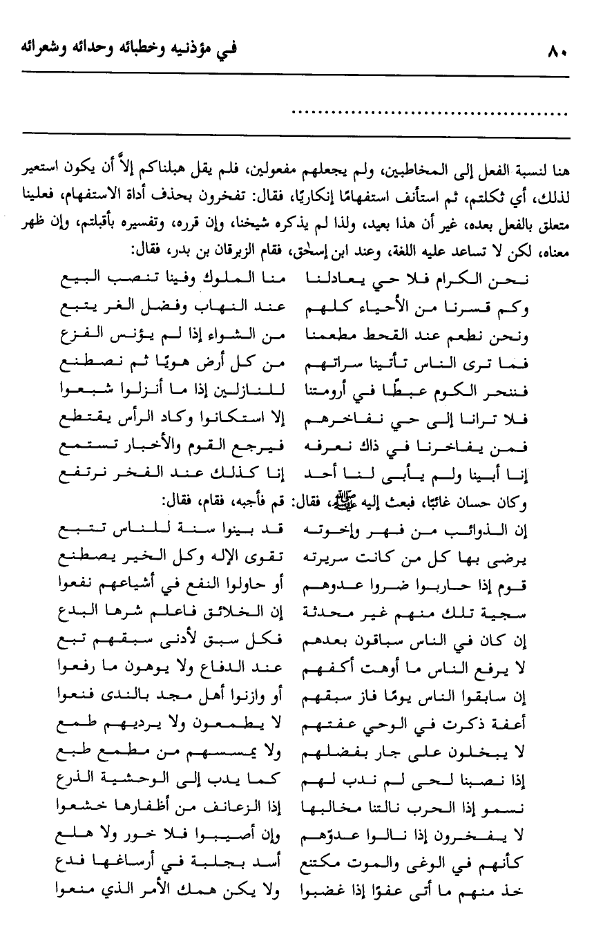 هنا لنسبة الفعل إلى المخاطبين، ولم يجعلوهم مفعولين، فلم يقل: هبلناكم إلّا أن يكون استعير لذلك، أي ثكلتم، ثم استأنف استفهامًا إنكاريًّا، فقال: تفخرون بحذف أداة الاستفهام، فعلينا متعلق بالفعل بعده، غير أن هذا بعيدًا، ولذا لم يذكره شيخنا، وإن قرَّره، وتفسيره بأقبلتم، وإن ظهر معناه، لكن لا تساعد عليه اللغة، وعند ابن إسحاق، فقام الزبرقان بن بدر، فقال: