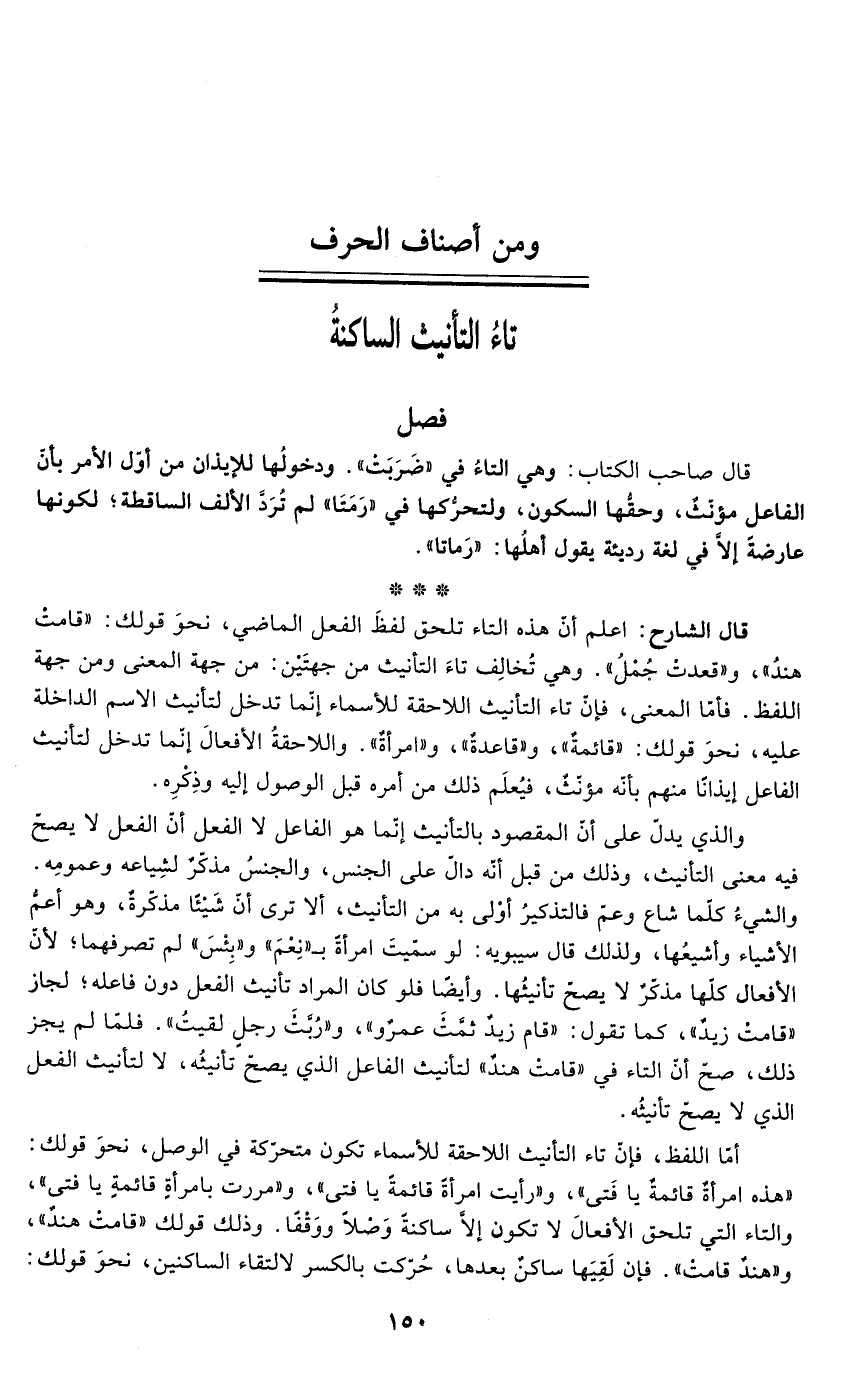 ومن أصناف الحرف تاءُ التأنيث الساكنة