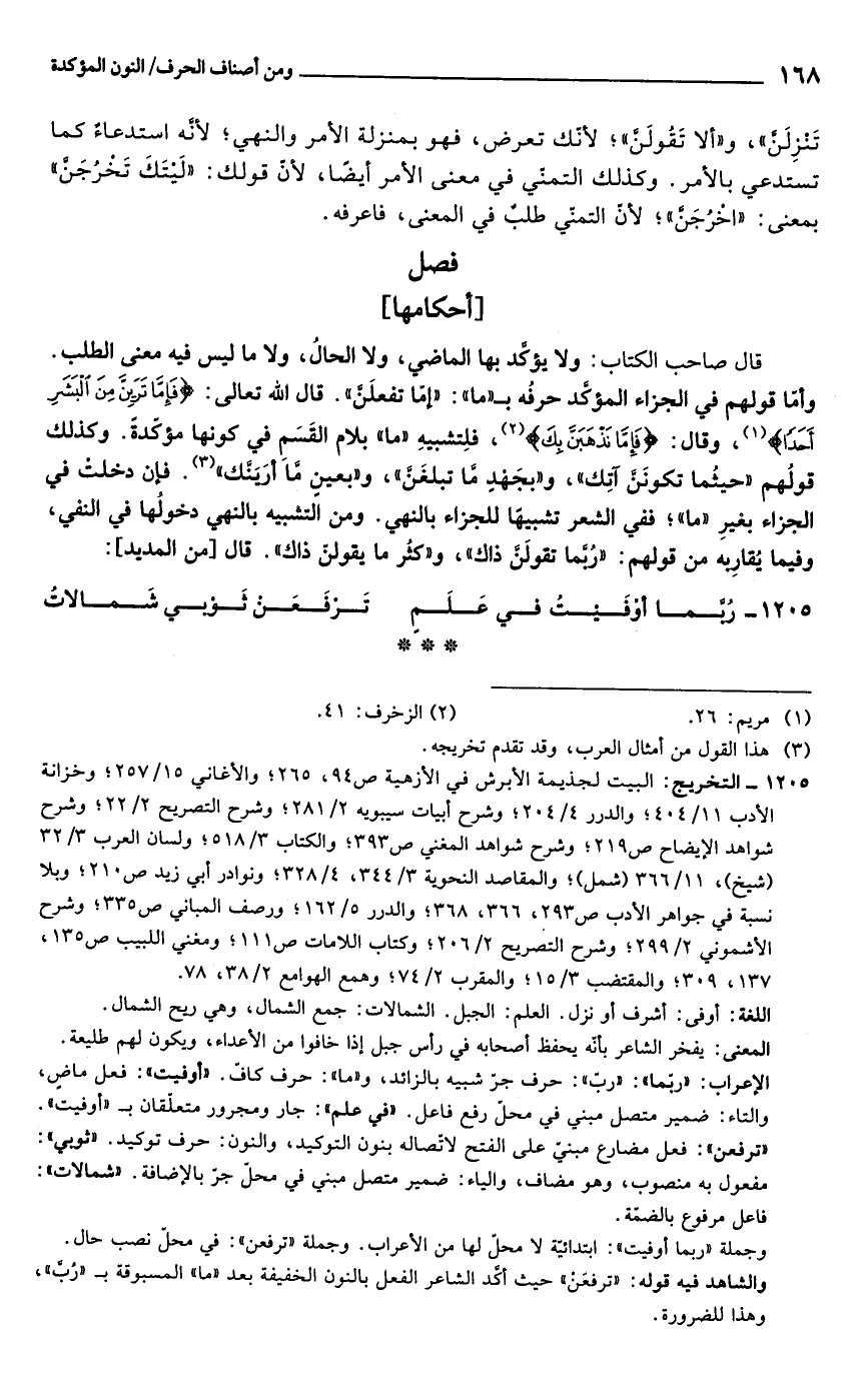 والشاهد فيه قوله: "ترفعَنْ" حيث أكَّد الشاعر الفعل بالنون الخفيفة بعد "ما" المسبوقة بـ "رُبَّ"، وهذا للضرورة.