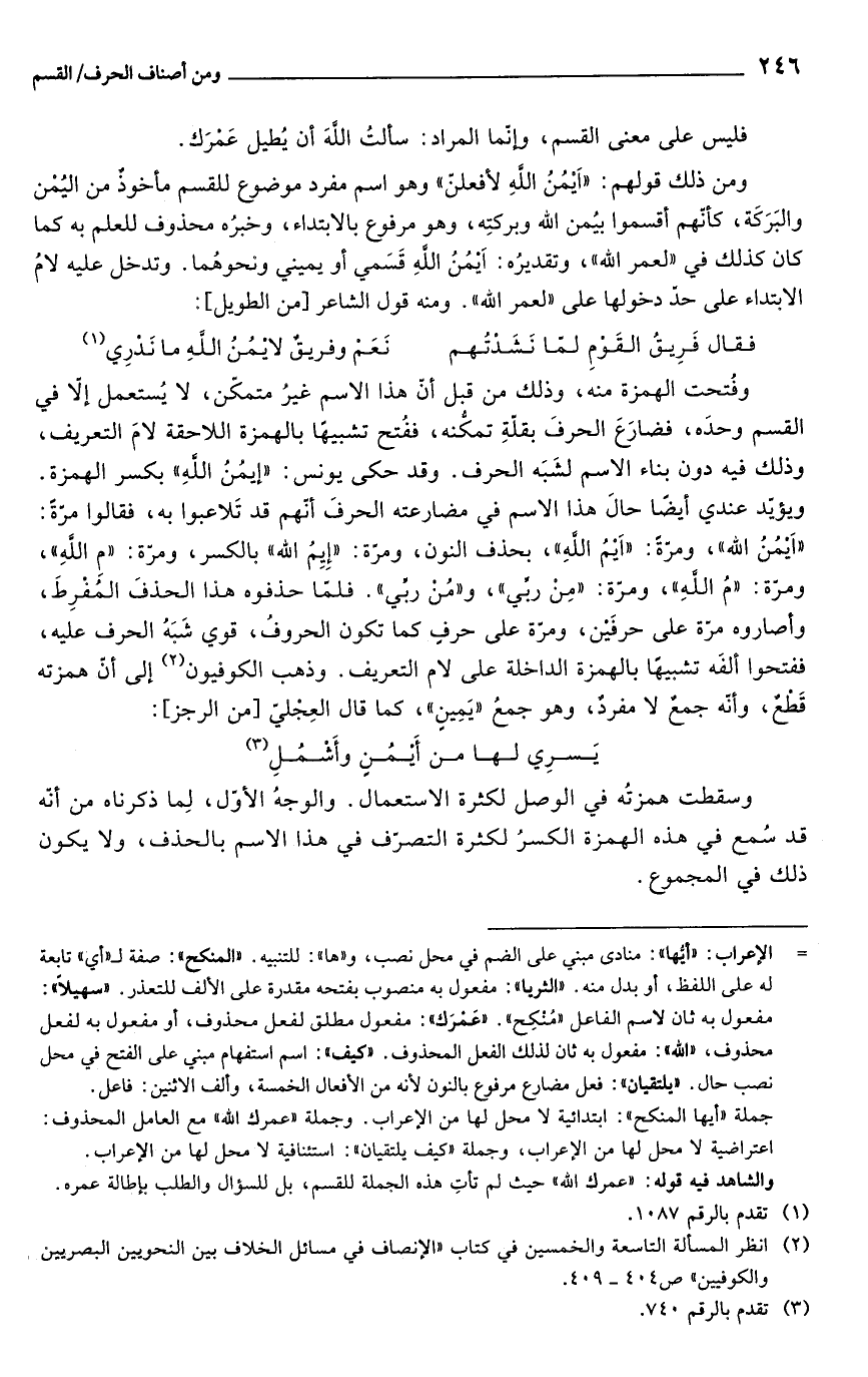 (¬2) انظر المسألة التاسعة والخمسين في كتاب "الإنصاف في مسائل الخلاف بين النحويين البصريين والكوفيين" ص 404 - 409.