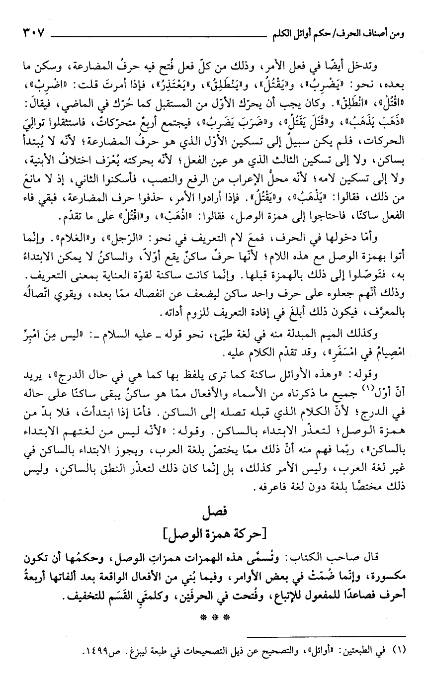 وقوله: "وهذه الأوائل ساكنة كما ترى يلفظ بها كما هي في حال الدرج"، يريد أنّ أول (¬1) جميع ما ذكرناه من الأسماء والأفعال ممّا هو ساكنٌ يبقى ساكنًا على حاله في الدرج؛ لأنّ الكلام الذي قبله تصله إلى الساكن. فأمّا إذا ابتدأتَ، فلا بدّ من همزة الوصل؛ لتعذّر الابتداء بالساكن. وقوله: "لأنّه ليس من لغتهم الابتداء بالساكن"، ربّما فهم منه أنّ ذلك ممّا يختصّ بلغة العرب، ويجوز الابتداء بالساكن في غير لغة العرب، وليس الأمر كذلك، بل إنّما كان ذلك لتعذر النطق بالساكن، وليس ذلك مختصًّا بلغة دون لغة فاعرفه.