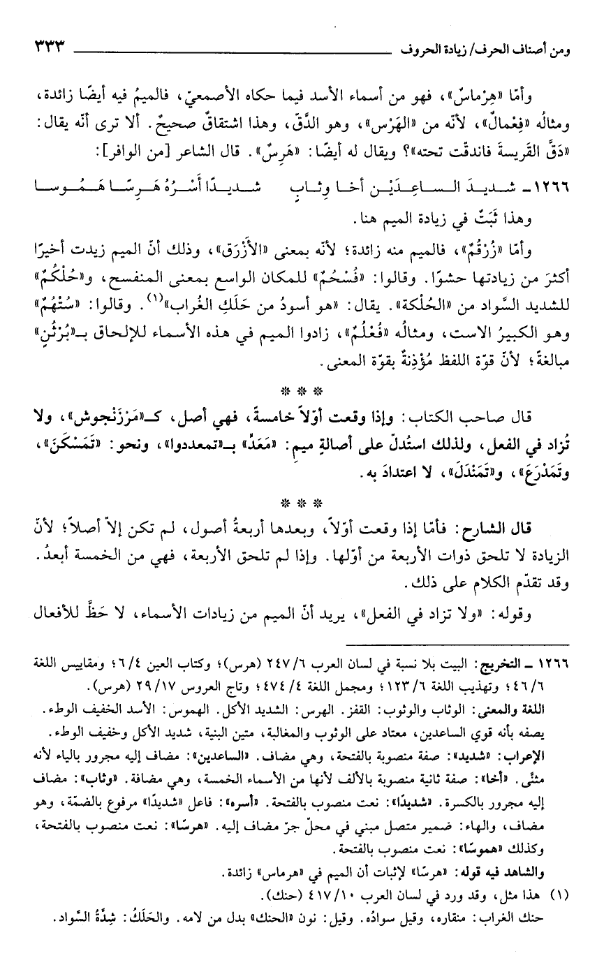 والشاهد فيه قوله: "هرسًا" لإثبات أن الميم في "هرماس" زائدة.