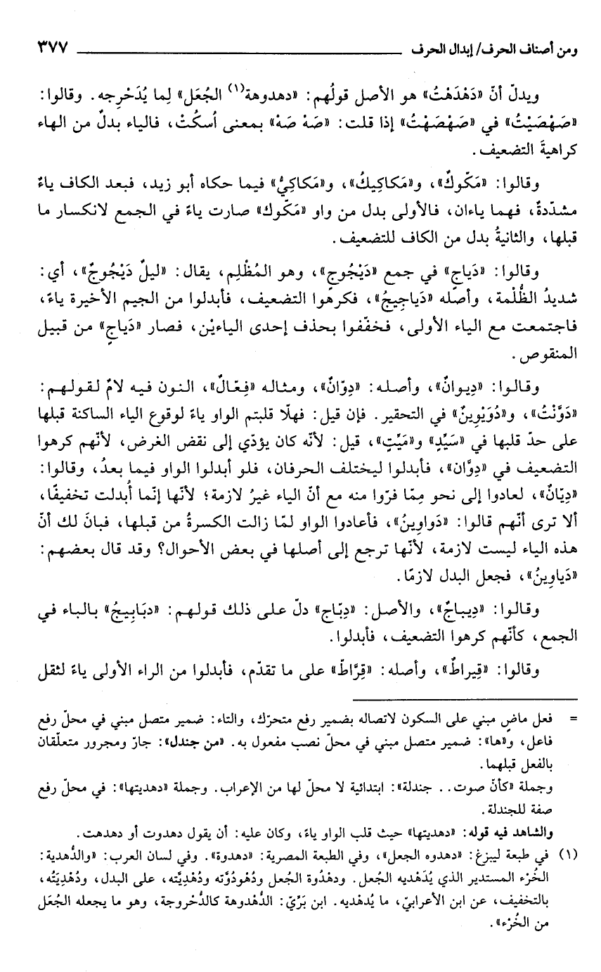 وقالوا: "دِيباجٌ"، والأصل: "دِبّاج" دلّ على ذلك قولهم: "دبَابِيجُ" بالباء في الجمع، كأنهم كرهوا التضعيف، فأبدلوا.