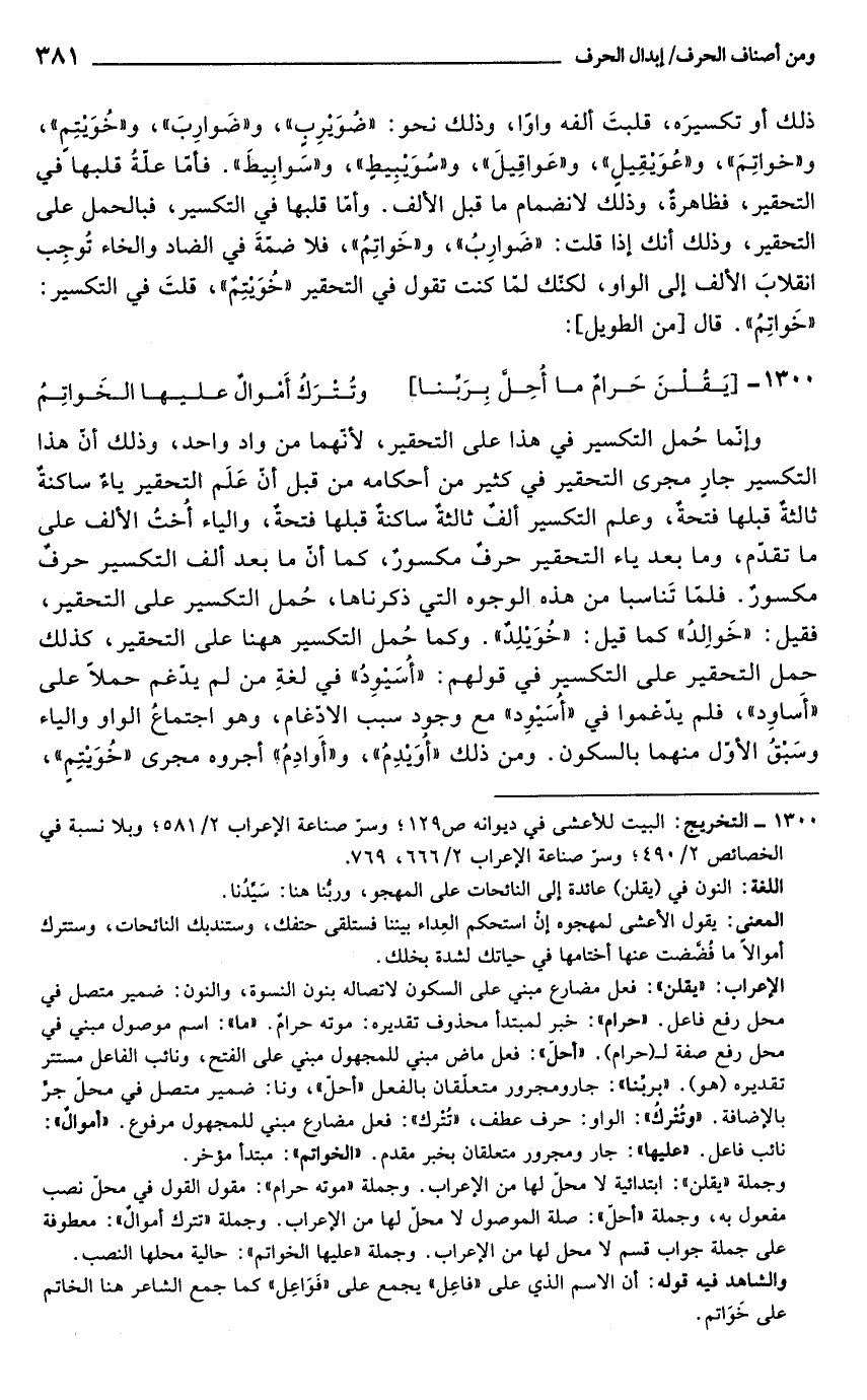 1300 - التخريج: البيت للأعشى في ديوانه ص 129؛ وسر صناعة الإعراب 2/ 581؛ وبلا نسبة في الخصائص 2/ 490؛ وسر صناعة الإعراب 2/ 666، 769.