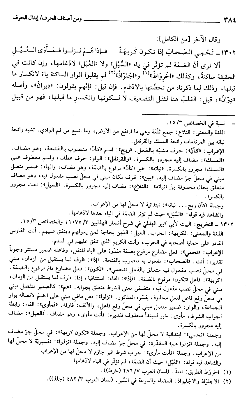 1302 - التخريج: البيت لأبي كبير الهذلي في شرح أشعار الهذليين 3/ 1075؛ والخصائص 3/ 15.