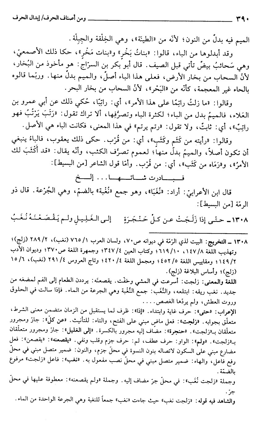 1308 - التخريج: البيت لذي الرّمّة في ديوانه ص 70، ولسان العرب 1/ 765 (نغب)، 2/ 289 (زلج)؛ وتهذيب اللغة 8/ 147، 10/ 619؛ وكتاب العين 4/ 347؛ وجمهرة اللغة ص 370؛ وديوان الأدب 2/ 149؛ ومقاييس اللغة 5/ 452؛ ومجمل اللغة 4/ 420؛ وتاج العروس 4/ 299 (نغب)، 6/ 15 (زلج)؛ وأساس البلاغة (زلج).