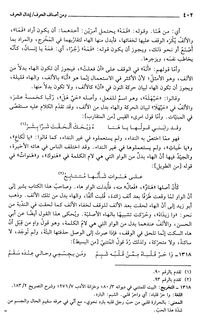 1318 - التخريج: البيت للمتنبي في ديوانه 3/ 80؛ وخزانة الأدب 7/ 276؛ وشرح التصريح 2/ 183.