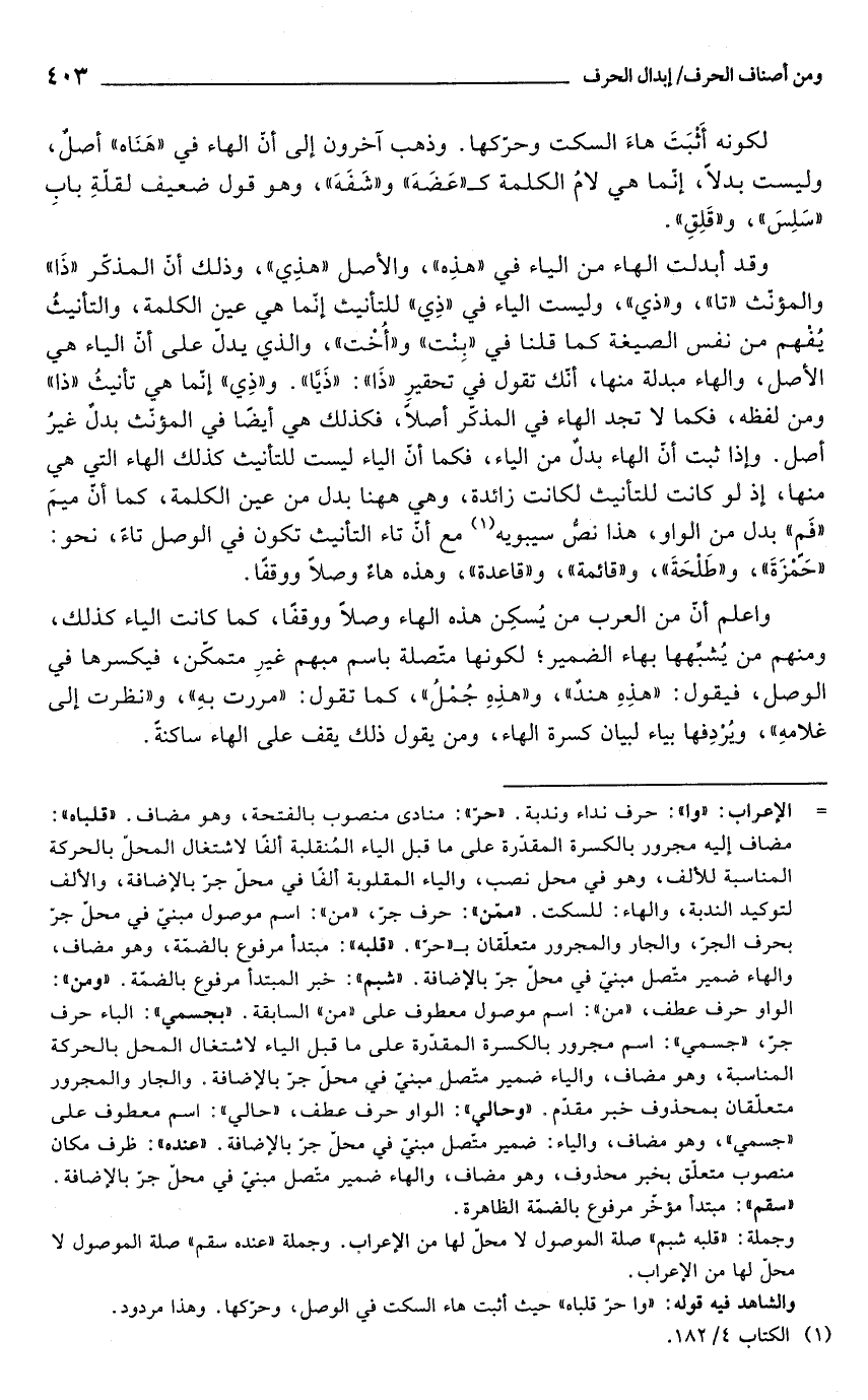 لكونه أَثْبَتَ هاءَ السكت وحرّكها. وذهب آخرون إلى أنّ الهاء في "هَنَاه" أصلٌ، وليست بدلاً، إنما هي لامُ الكلمة كـ"عَضَهَ" و"شَفَهَ"، وهو قول ضعيف لقلّةِ باب "سَلِسَ"، و"قَلِقِ".