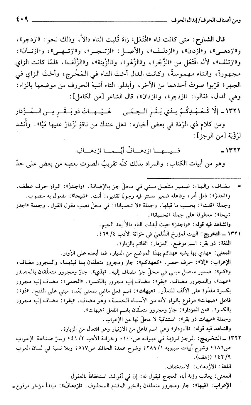 1322 - التخريج: الرجز لرؤبة في ديوانه ص 100؛ وخزانة الأدب 2/ 41؛ وسرّ صناعة الإعراب ص 186؛ وشرح أبيات سيبويه 1/ 289؛ وشرح عمدة الحافظ ص 517؛ وبلا نسبة في لسان العرب 9/ 142 (زهف).