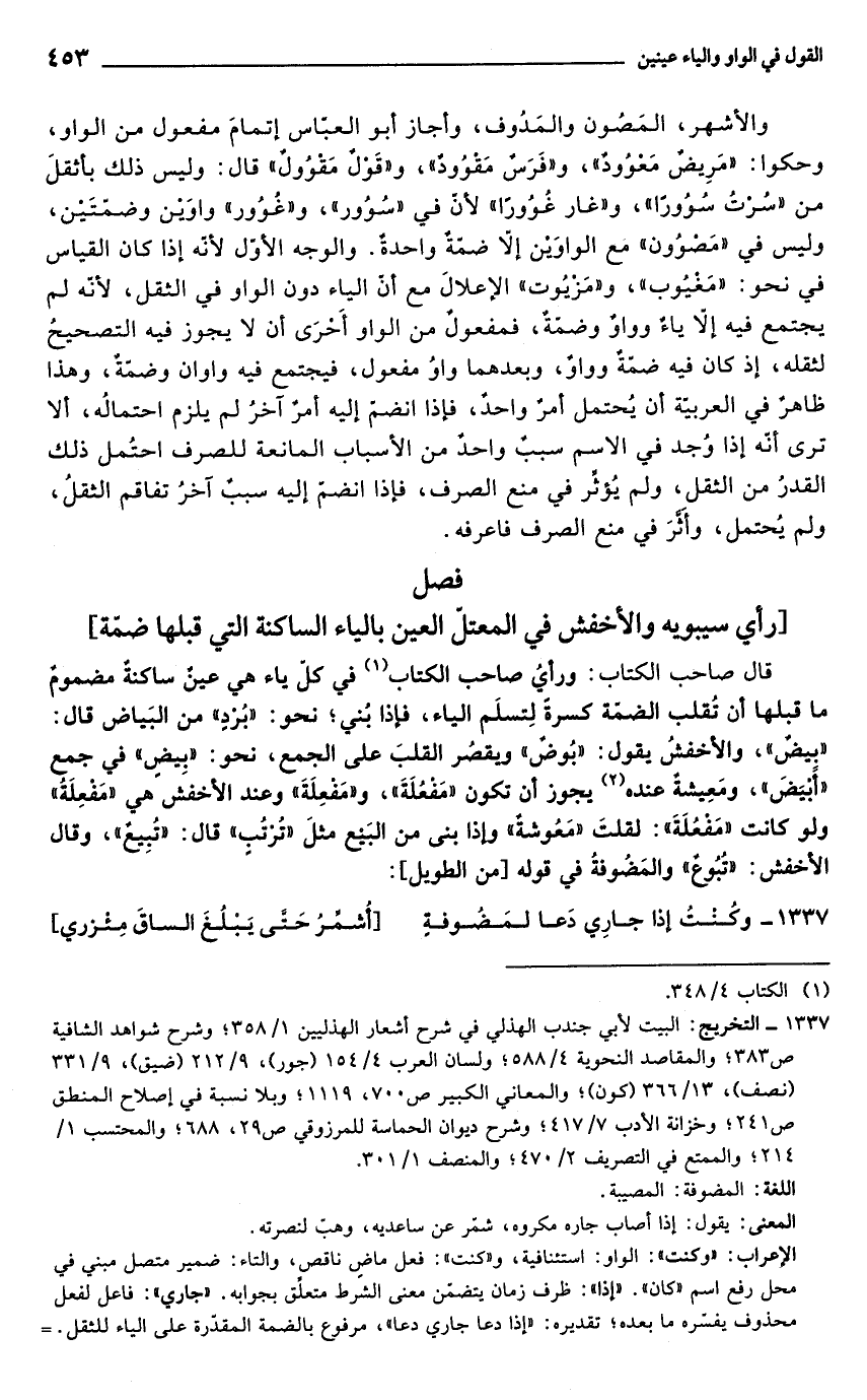 فصل [رأي سيبويه والأخفش في المعتلّ العين بالياء الساكنة التي قبلها ضمة]