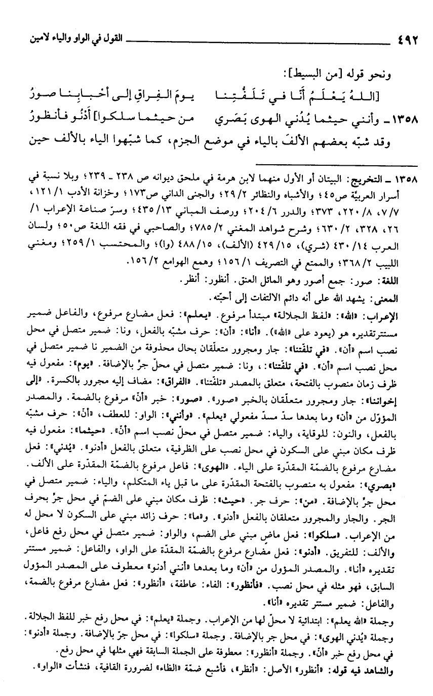 1358 - وأنني حيثما يُدُني الهوى بَصَري ... من حيثما سلكوا] أَدْنُو فأنظورُ