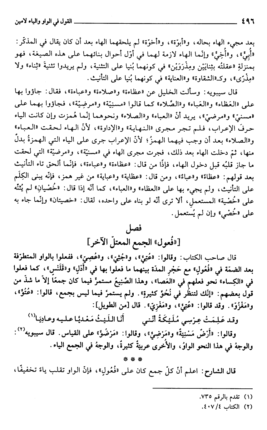 فصل ["فُعول" الجمع المعتلّ الآخر]