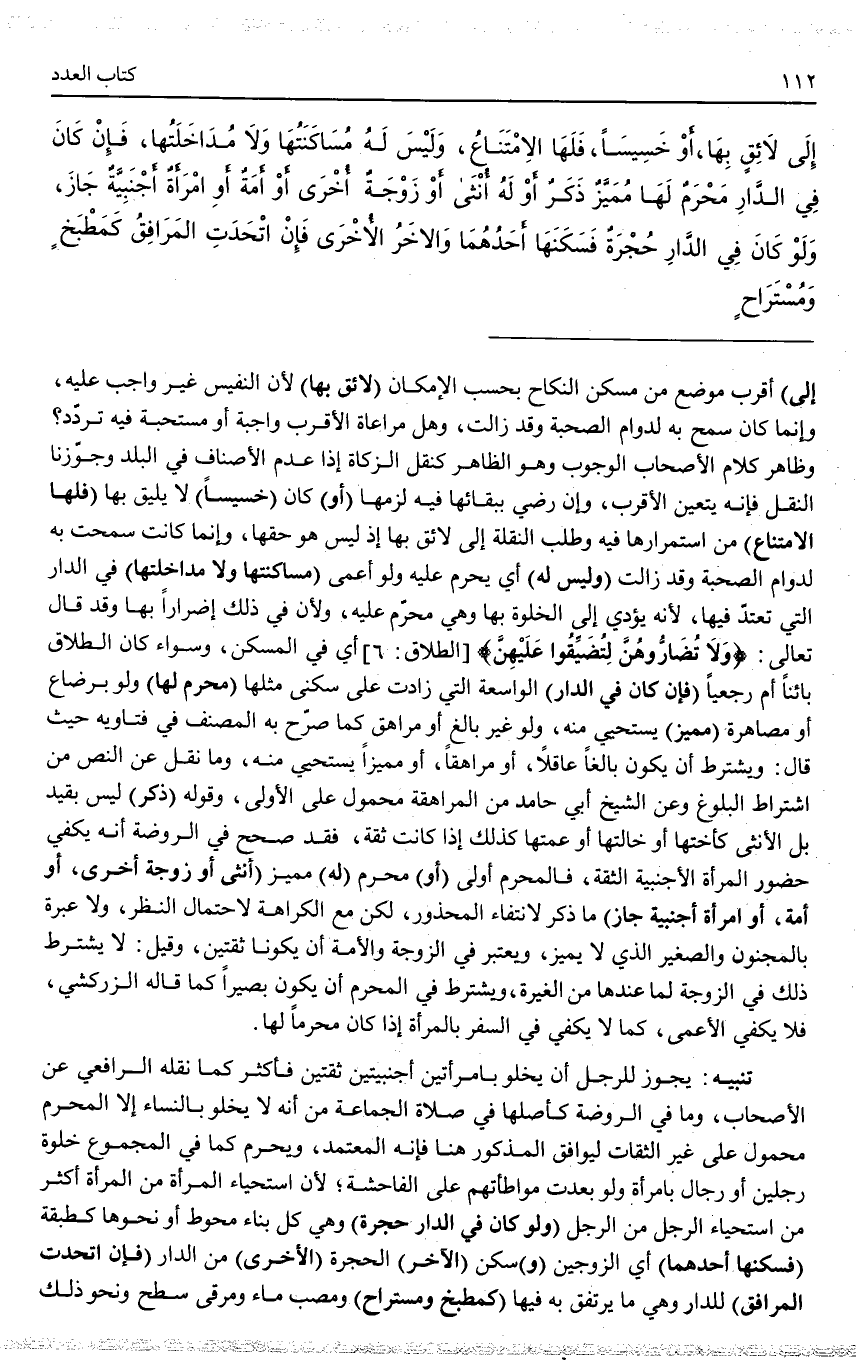 تَنْبِيهٌ يَجُوزُ لِلرَّجُلِ أَنْ يَخْلُوَ بِامْرَأَتَيْنِ أَجْنَبِيَّتَيْنِ ثِقَتَيْنِ فَأَكْثَرَ كَمَا نَقَلَهُ الرَّافِعِيُّ عَنْ الْأَصْحَابِ، وَمَا فِي الرَّوْضَةِ كَأَصْلِهَا فِي صَلَاةِ الْجَمَاعَةِ - مِنْ أَنَّهُ لَا يَخْلُو بِالنِّسَاءِ إلَّا الْمَحْرَمُ - مَحْمُولٌ عَلَى غَيْرِ الثِّقَاتِ لِيُوَافِقَ الْمَذْكُورَ هُنَا فَإِنَّهُ الْمُعْتَمَدُ، وَيَحْرُمُ كَمَا فِي الْمَجْمُوعِ خَلْوَةُ رَجُلَيْنِ أَوْ رِجَالٍ بِامْرَأَةٍ وَلَوْ بَعُدَتْ مُوَاطَأَتُهُمْ عَلَى الْفَاحِشَةِ؛ لِأَنَّ اسْتِحْيَاءَ الْمَرْأَةِ مِنْ الْمَرْأَةِ أَكْثَرُ مِنْ اسْتِحْيَاءِ الرَّجُلِ مِنْ الرَّجُلِ (وَلَوْ كَانَ فِي الدَّارِ حُجْرَةٌ) وَهِيَ كُلُّ بِنَاءٍ مَحُوطٍ أَوْ نَحْوُهَا كَطَبَقَةٍ (فَسَكَنَهَا أَحَدُهُمَا) أَيْ الزَّوْجَيْنِ (وَ) سَكَنَ (الْآخَرُ) الْحُجْرَةَ (الْأُخْرَى) مِنْ الدَّارِ (فَإِنْ اتَّحَدَتْ الْمَرَافِقُ) لِلدَّارِ وَهِيَ مَا يُرْتَفَقُ بِهِ فِيهَا (كَمَطْبَخٍ وَمُسْتَرَاحٍ) وَمَصَبِّ مَاءٍ وَمَرْقَى سَطْحٍ وَنَحْوِ ذَلِكَ