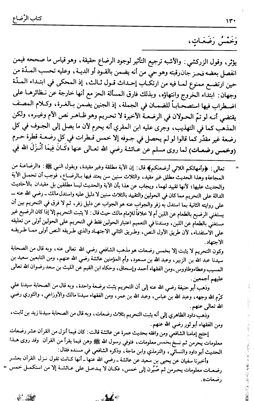 ـــــــــــــــــــــــــــــQيُؤَثِّرْ، وَقَوْلُ الزَّرْكَشِيّ: وَالْأَشْبَهُ تَرْجِيعُ التَّأْثِيرِ لِوُجُودِ الرَّضَاعِ حَقِيقَةً، وَهُوَ قِيَاسُ مَا صَحَّحَهُ فِيمَنْ انْفَصَلَ بَعْضُهُ فَحَزَّ جَانٍ رَقَبَتَهُ وَهُوَ حَيٌّ مِنْ أَنَّهُ يُضْمَنُ بِالْقَوَدِ أَوْ الدِّيَةِ، وَعَلَيْهِ تُحْسَبُ الْمُدَّةُ مِنْ حِينِ ارْتَضَعَ مَمْنُوعٌ لِمَا فِيهِ مِنْ ارْتِكَابِ إحْدَاثِ قَوْلٍ ثَالِثٍ، إذْ الْمَحْكِيُّ فِي ابْتِدَاءِ الْمُدَّةِ وَجْهَانِ: ابْتِدَاءُ الْخُرُوجِ وَانْتِهَاؤُهُ، وَبِذَلِكَ فَارَقَ مَسْأَلَةَ الْحَزِّ مَعَ أَنَّهَا خَارِجَةٌ عَنْ نَظَائِرِهَا عَلَى اضْطِرَابٍ فِيهَا اسْتِصْحَابًا لِلضَّمَانِ فِي الْجُمْلَةِ، إذْ الْجَنِينُ يُضْمَنُ بِالْغُرَّةِ، وَكَلَامُ الْمُصَنِّفِ يَقْتَضِي أَنَّهُ لَوْ تَمَّ الْحَوْلَانِ فِي الرَّضْعَةِ الْأَخِيرَةِ لَا تَحْرِيمَ وَهُوَ ظَاهِرُ نَصُّ الْأُمِّ وَغَيْرِهِ، وَلَكِنَّ الْمَذْهَبَ كَمَا فِي التَّهْذِيبِ، وَجَرَى عَلَيْهِ ابْنُ الْمُقْرِي أَنَّهُ يُحَرِّمُ لِأَنَّ مَا يَصِلُ إلَى الْجَوْفِ فِي كُلِّ رَضْعَةٍ غَيْرُ مُقَدَّرٍ كَمَا قَالُوا لَوْ لَمْ يَحْصُلْ فِي جَوْفِهِ إلَّا خَمْسُ قَطَرَاتٍ فِي كُلِّ رَضْعَةٍ قَطْرَةٌ حَرَّمَ (وَخَمْسُ رَضَعَاتٍ) لِمَا رَوَى مُسْلِمٌ