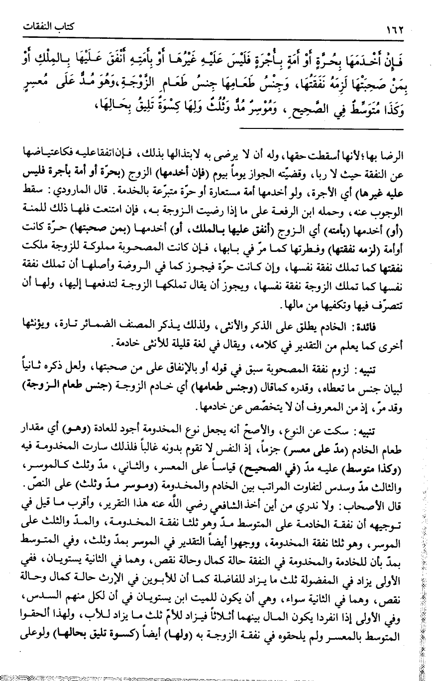 ـــــــــــــــــــــــــــــQالرِّضَا بِهَا؛ لِأَنَّهَا أَسْقَطَتْ حَقَّهَا، وَلَهُ أَنْ لَا يَرْضَى بِهِ لِابْتِذَالِهَا بِذَلِكَ، فَإِنْ اتَّفَقَا عَلَيْهِ فَكَاعْتِيَاضِهَا عَنْ النَّفَقَةِ حَيْثُ لَا رِبَا، وَقَضِيَّتُهُ الْجَوَازُ يَوْمًا بِيَوْمٍ (فَإِنْ أَخْدَمَهَا) الزَّوْجُ (بِحُرَّةٍ أَوْ أَمَةٍ بِأُجْرَةٍ فَلَيْسَ عَلَيْهِ غَيْرُهَا) أَيْ الْأُجْرَةِ، وَلَوْ أَخْدَمَهَا أَمَةً مُسْتَعَارَةً أَوْ حُرَّةً مُتَبَرِّعَةً بِالْخِدْمَةِ. قَالَ الْمَاوَرْدِيُّ: سَقَطَ الْوُجُوبُ عَنْهُ، وَحَمَلَهُ ابْنُ الرِّفْعَةِ عَلَى مَا إذَا رَضِيَتْ الزَّوْجَةُ بِهِ، فَإِنْ امْتَنَعَتْ فَلَهَا ذَلِكَ لِلْمِنَّةِ (أَوْ) أَخْدَمَهَا (بِأَمَتِهِ) أَيْ الزَّوْجِ (أَنْفَقَ عَلَيْهَا بِالْمِلْكِ، أَوْ) أَخْدَمَهَا (بِمَنْ صَحِبَتْهَا) حُرَّةً كَانَتْ أَوْ أَمَةً (لَزِمَهُ نَفَقَتُهَا) وَفِطْرَتُهَا كَمَا مَرَّ فِي بَابِهَا، فَإِنْ كَانَتْ الْمَصْحُوبَةُ مَمْلُوكَةً لِلزَّوْجَةِ مَلَكَتْ نَفَقَتَهَا كَمَا تَمْلِكُ نَفَقَةَ نَفْسِهَا، وَإِنْ كَانَتْ حُرَّةً فَيَجُوزُ كَمَا فِي الرَّوْضَةِ وَأَصْلِهَا أَنْ تَمْلِكَ نَفَقَةَ نَفْسِهَا كَمَا تَمْلِكُ الزَّوْجَةُ نَفَقَةَ نَفْسِهَا، وَيَجُوزُ أَنْ يُقَالَ: تَمْلِكُهَا الزَّوْجَةُ لِتَدْفَعَهَا إلَيْهَا، وَلَهَا أَنْ تَتَصَرَّفَ فِيهَا وَتَكْفِيَهَا مِنْ مَالِهَا. فَائِدَةٌ: الْخَادِمُ يُطْلَقُ عَلَى الذَّكَرِ وَالْأُنْثَى، وَلِذَلِكَ يُذَكِّرُ الْمُصَنِّفُ الضَّمَائِرَ تَارَةً، وَيُؤَنِّثُهَا أُخْرَى كَمَا يُعْلَمُ مِنْ التَّقْدِيرِ فِي كَلَامِهِ، وَيُقَالُ فِي لُغَةٍ قَلِيلَةٍ لِلْأُنْثَى خَادِمَةٌ. .